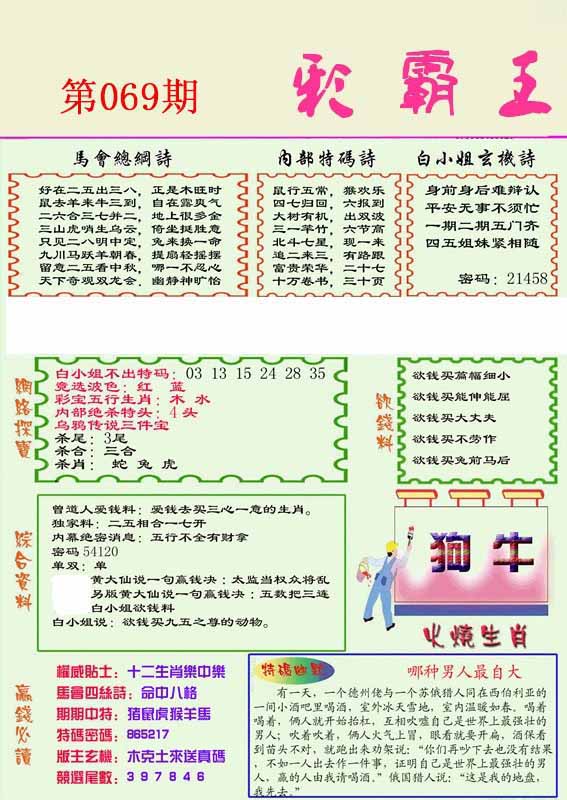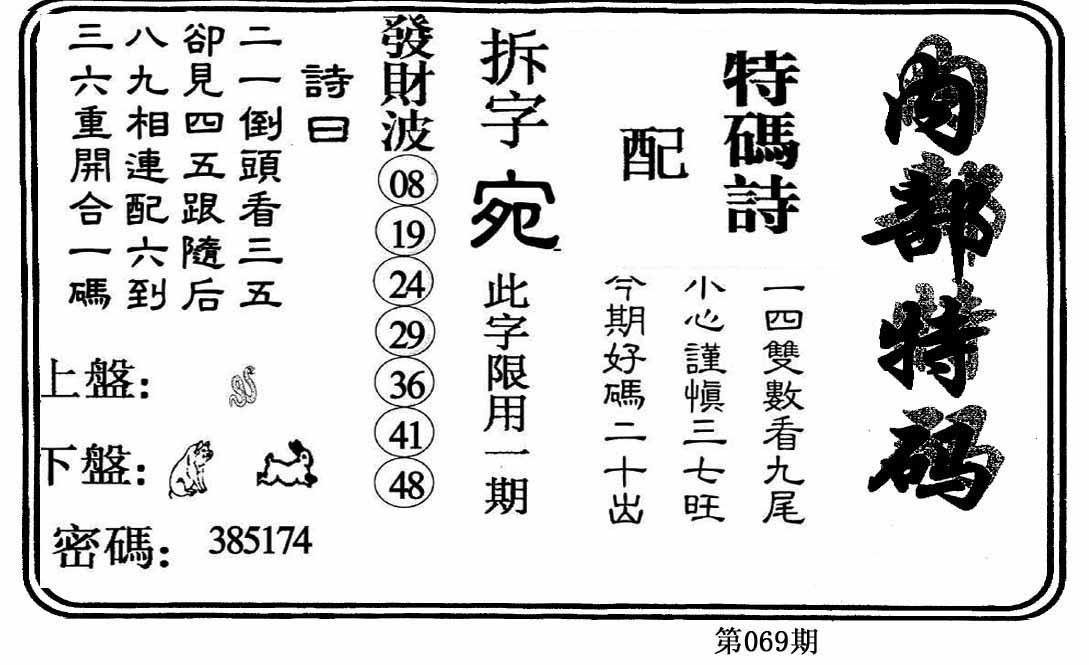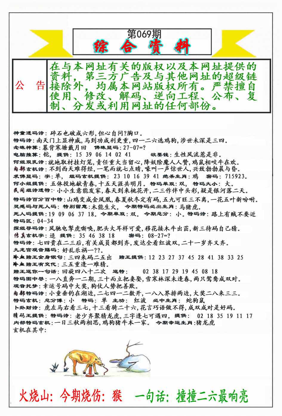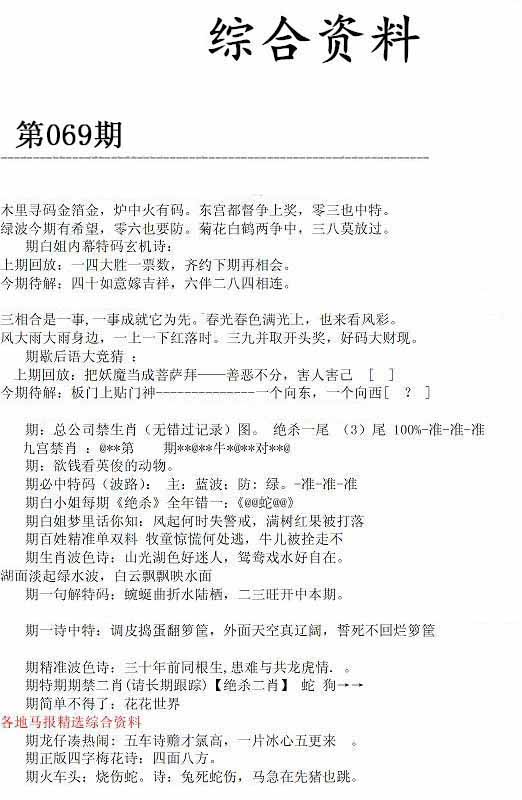 | 069期:《主攻:内幕规律平特肖:<蛇>下50万》! | ||