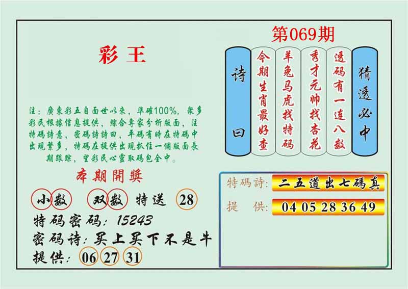| 067期:精准五不中【46 28 31 06 34】虎29 |