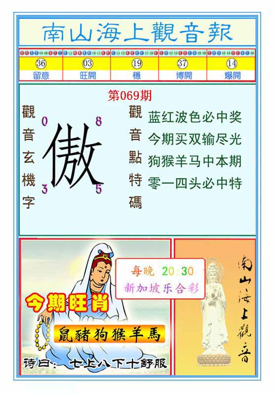 | 069期:神奇七尾【6 4 0 3 5 8 7】开:?00 |