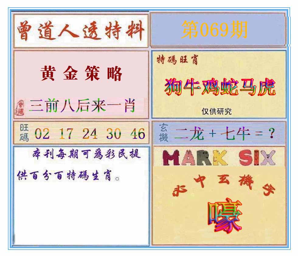 069期推荐六肖:<虎马龙牛鼠羊>内幕资料请大胆下注! | ||