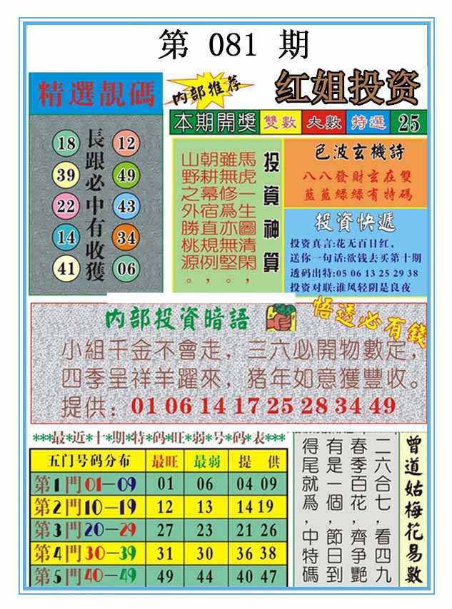 | 081期推荐五码:<14 24 36 46 08>大胆下注十万让你赚百万!