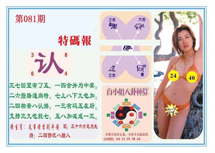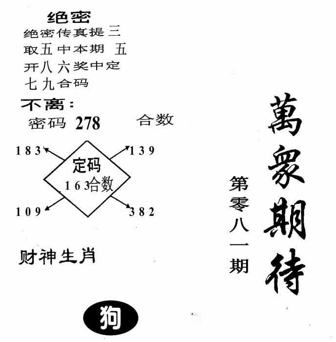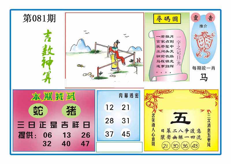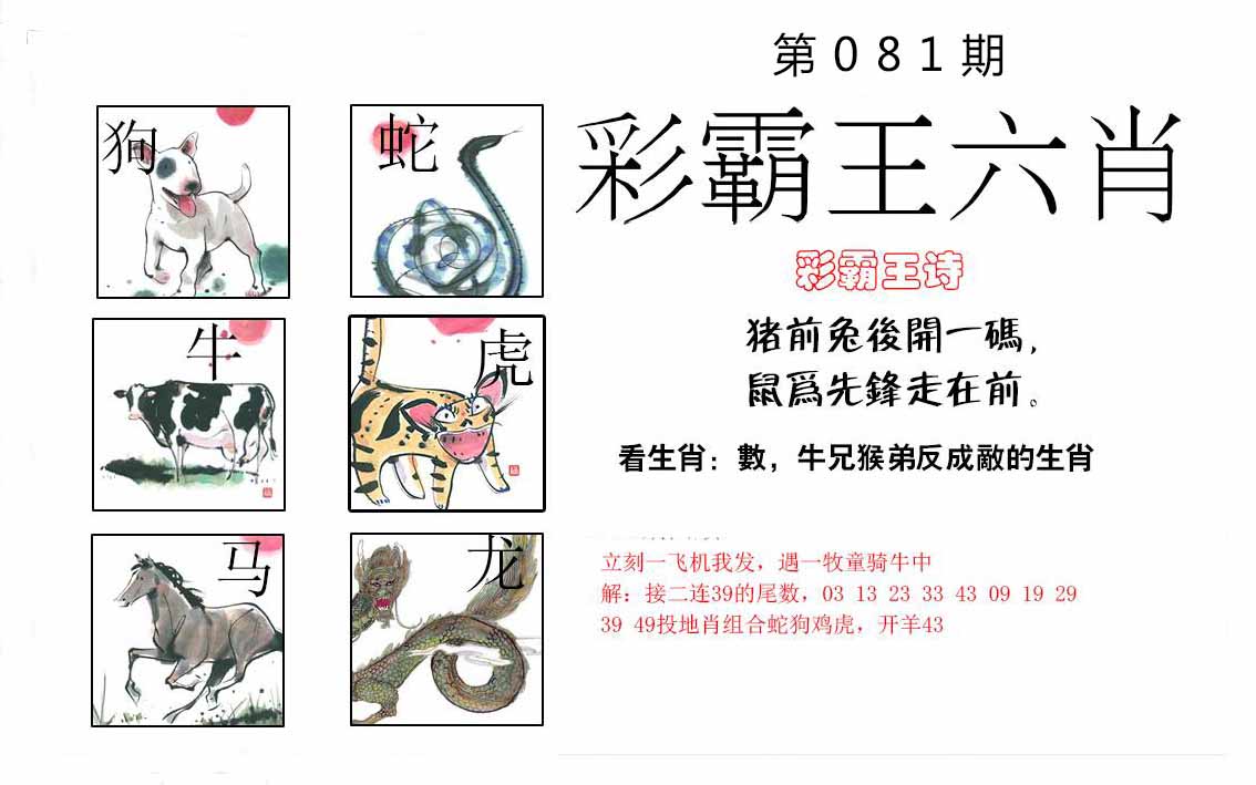 081期:【另版跑狗】开0 跑狗九肖:兔羊狗猪马龙蛇鸡鼠 跑狗七肖:兔羊狗猪马龙蛇 跑狗五肖:兔羊狗猪马 跑狗三肖:兔羊狗 12码:10 03 13 09 43 04 16 19 24 44 31 28 | ||