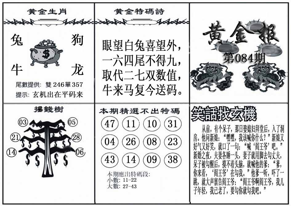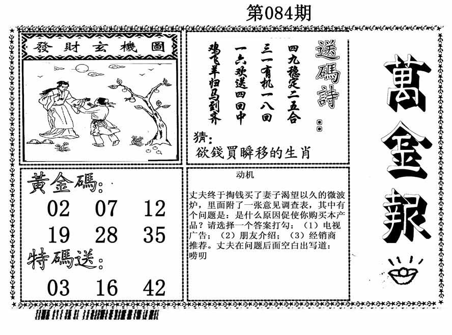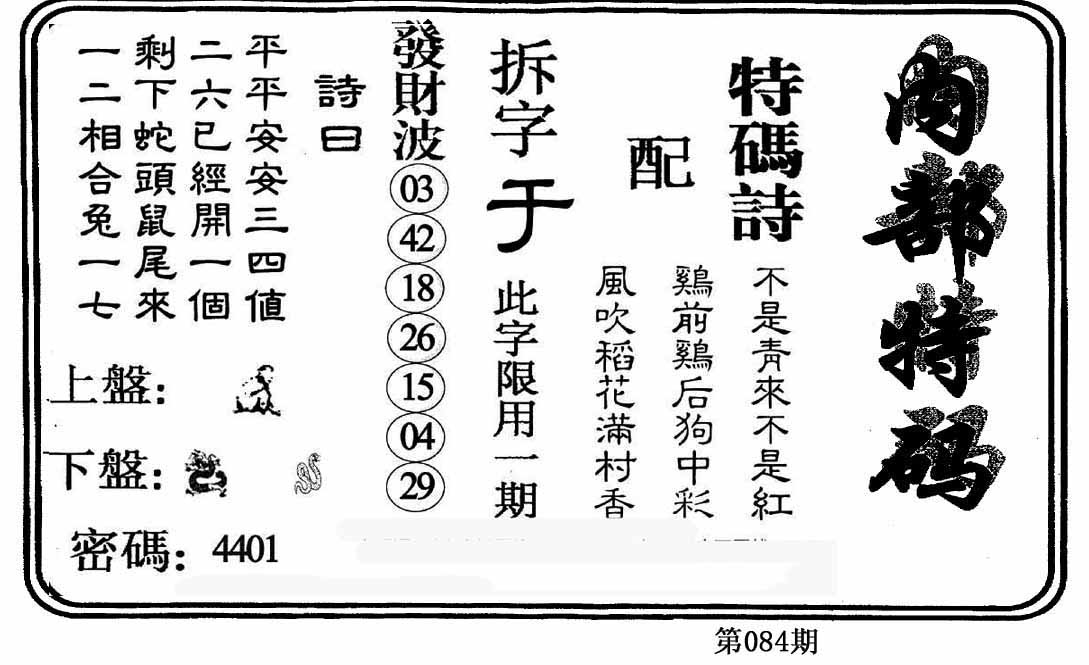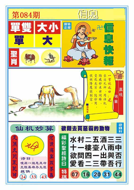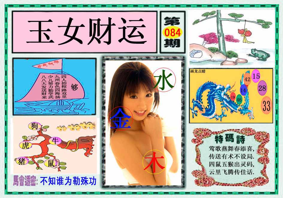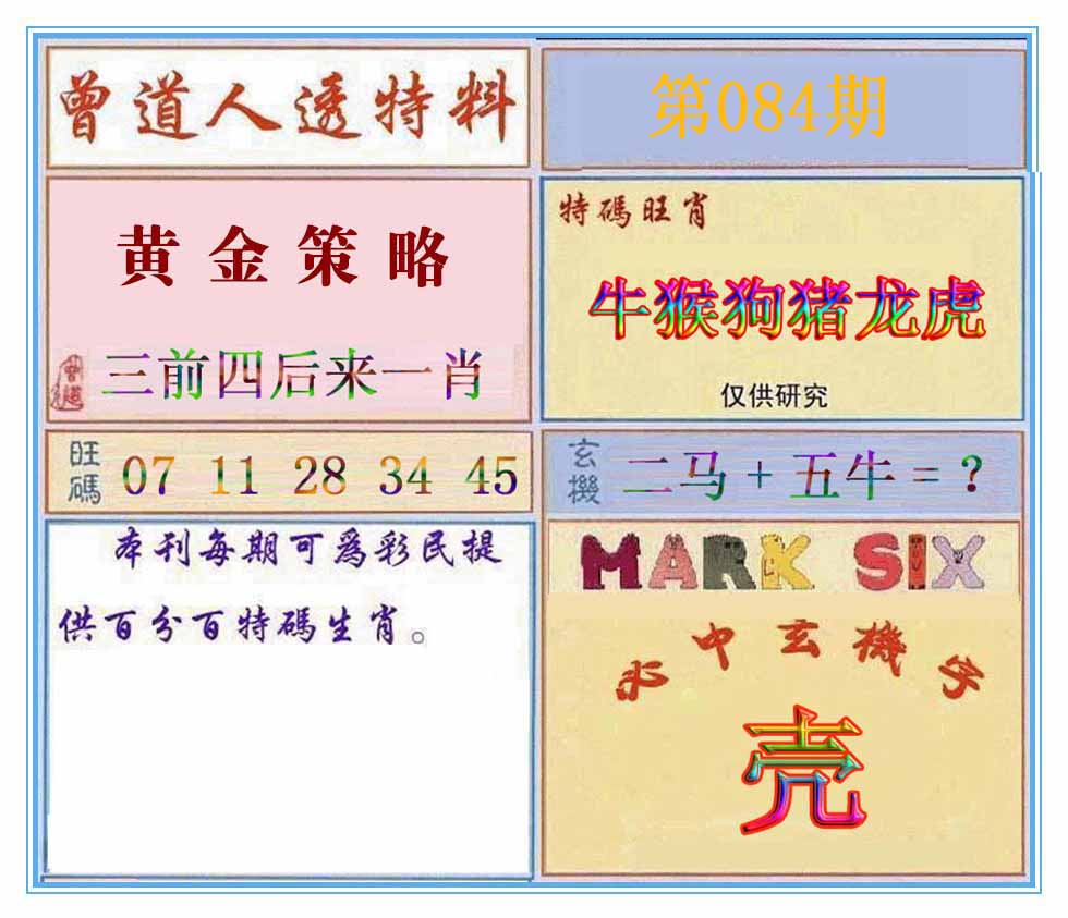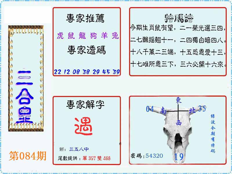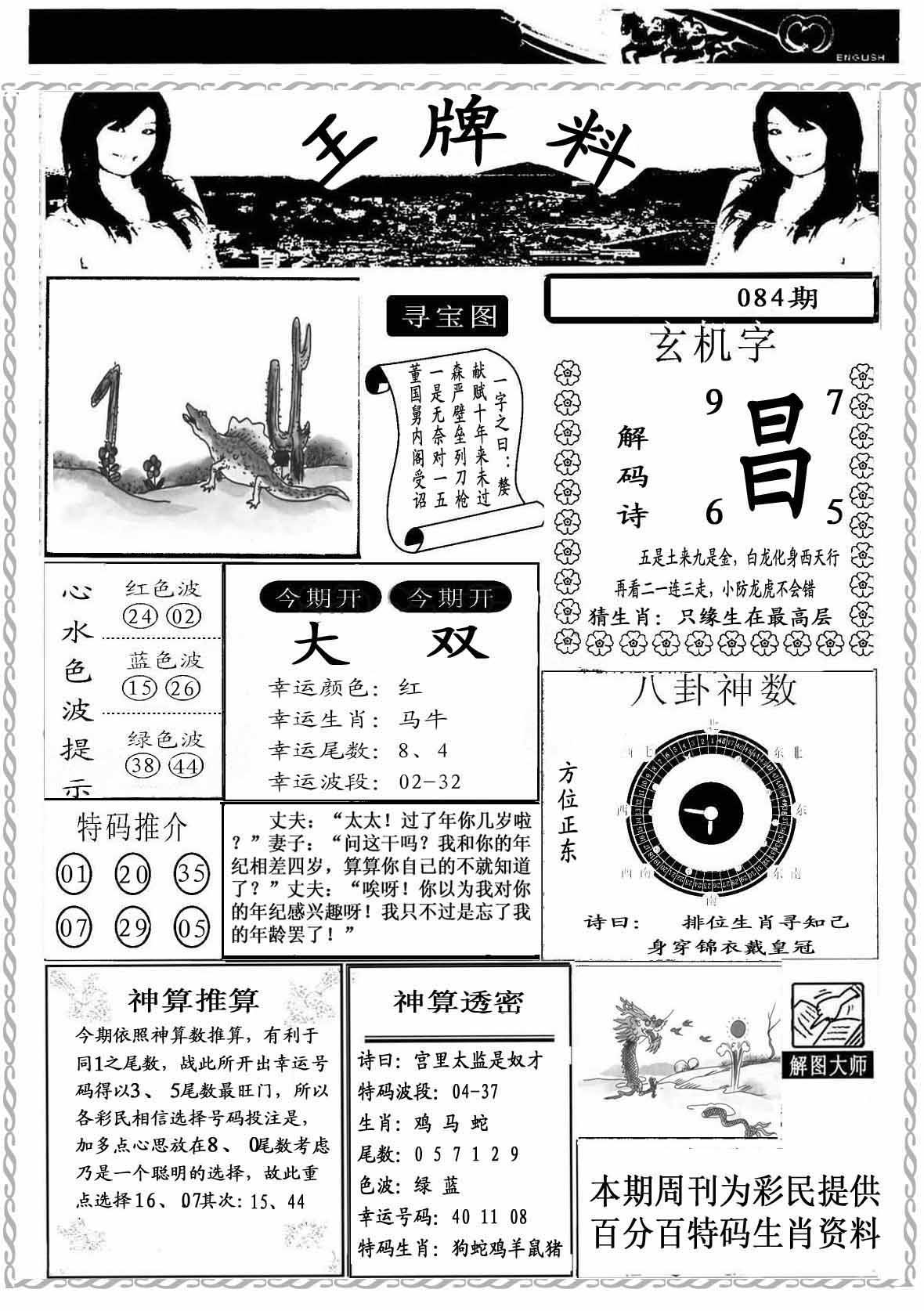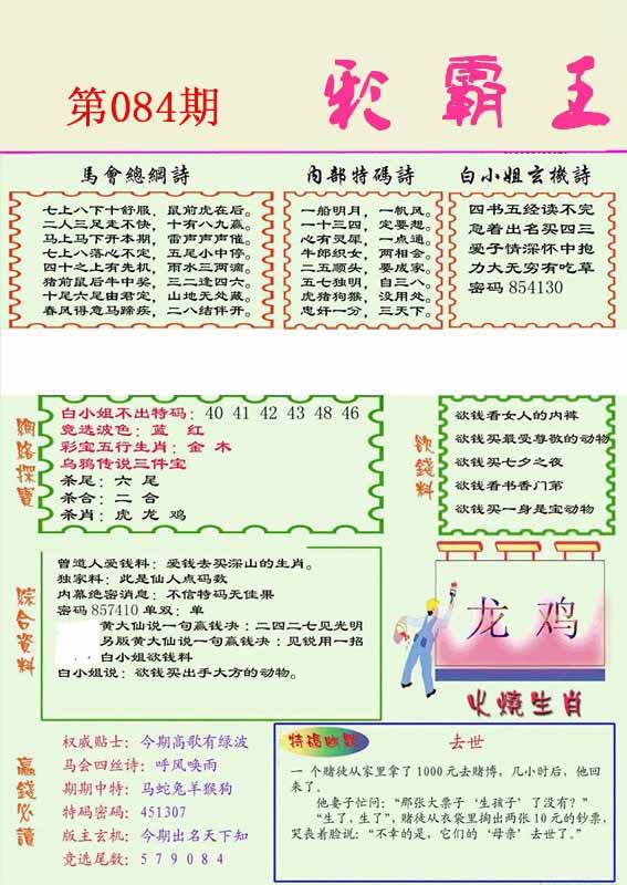 | 084期:《主攻:内幕规律平特肖:<马>下50万》! | ||