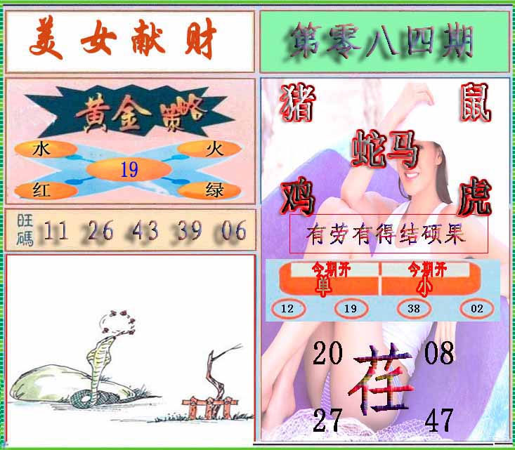 | 084期推荐五码:<01 08 47 03 04>大胆下注十万让你赚百万!