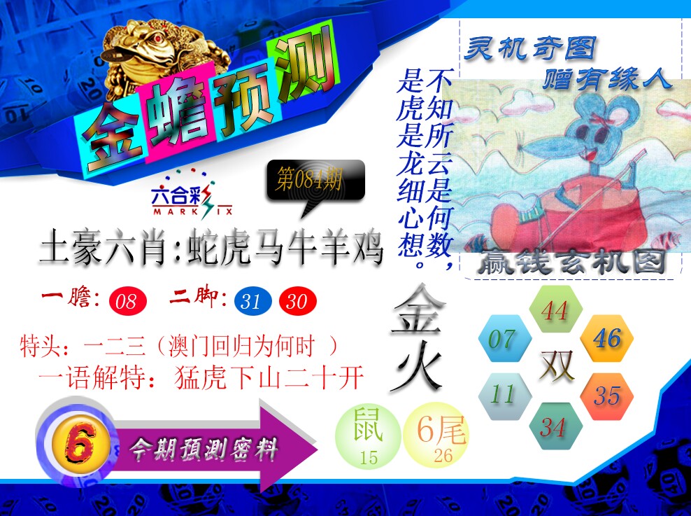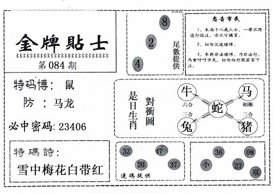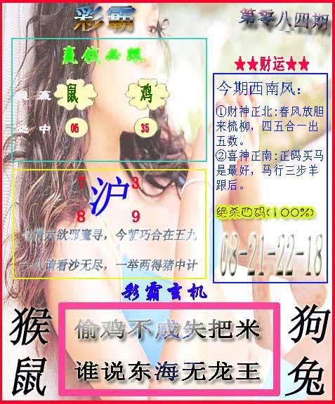 084期推荐六肖:<猪猴牛鼠蛇兔>内幕资料请大胆下注! | ||