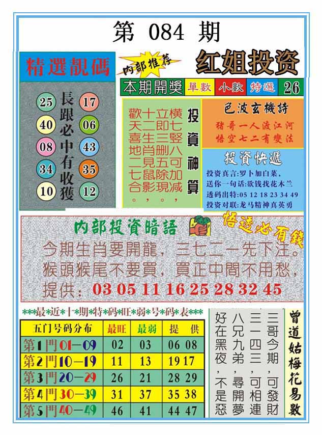 | 077期:精准五不中【03 30 20 45 35】鼠43 |