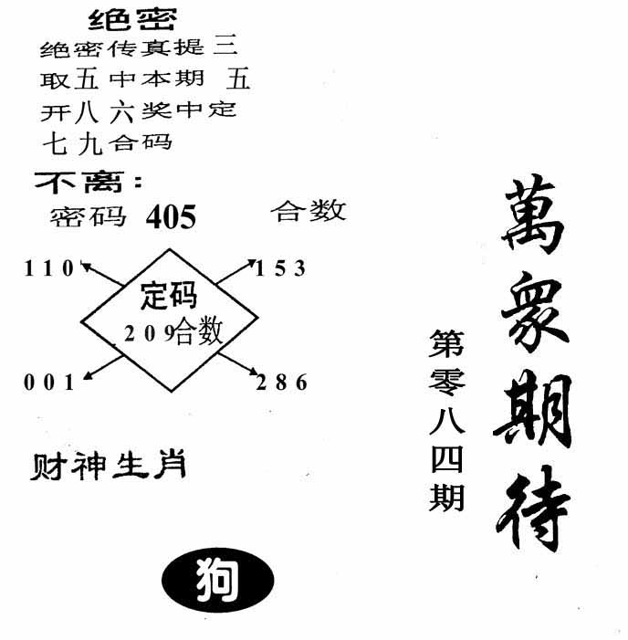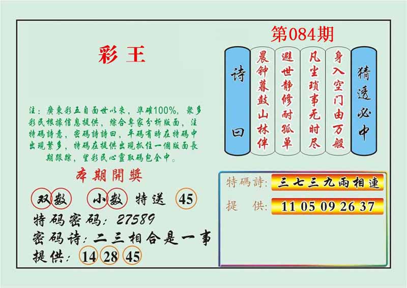 | 084期:神奇七尾【4 5 7 6 0 9 3】开:?00 |
