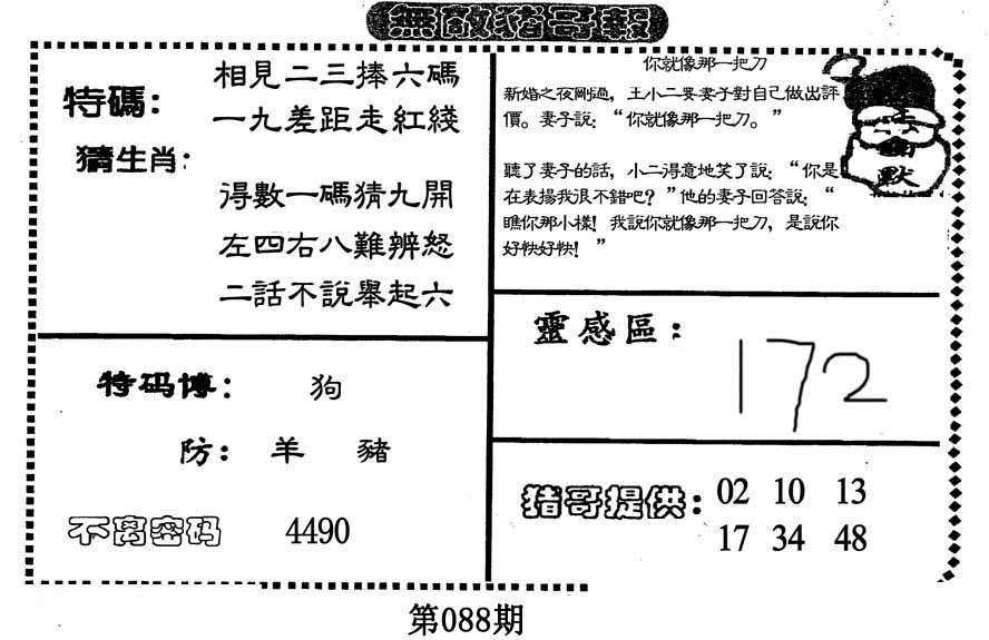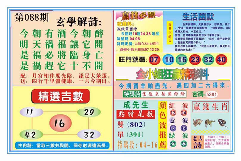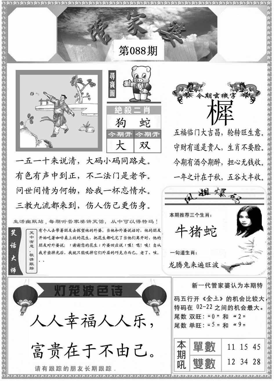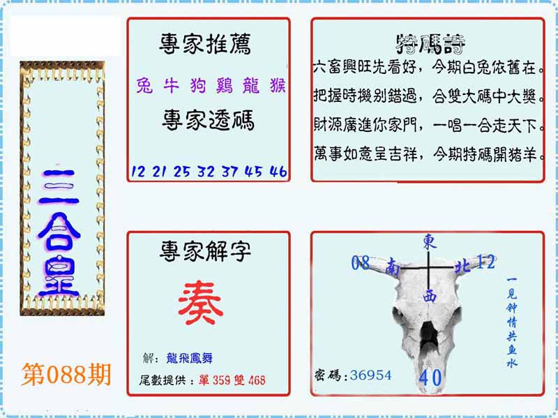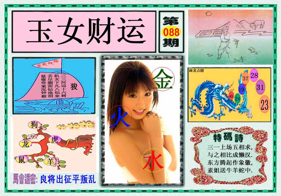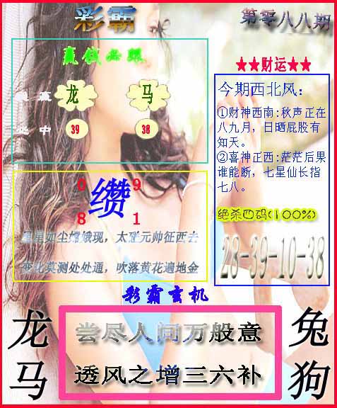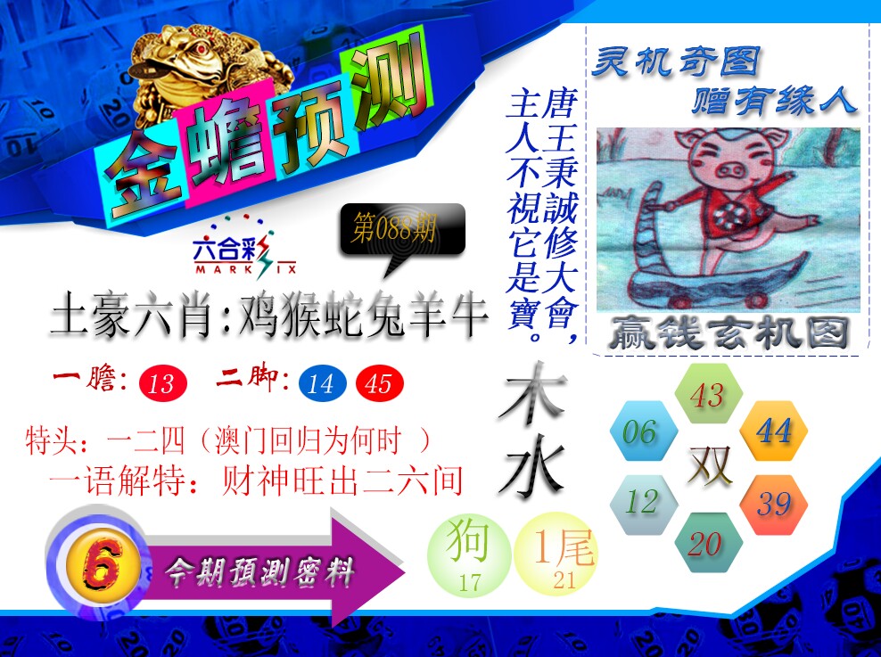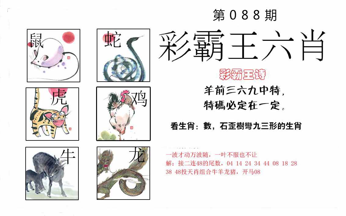 088期推荐六肖:<鸡猪马牛兔龙>内幕资料请大胆下注! | ||