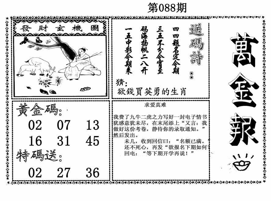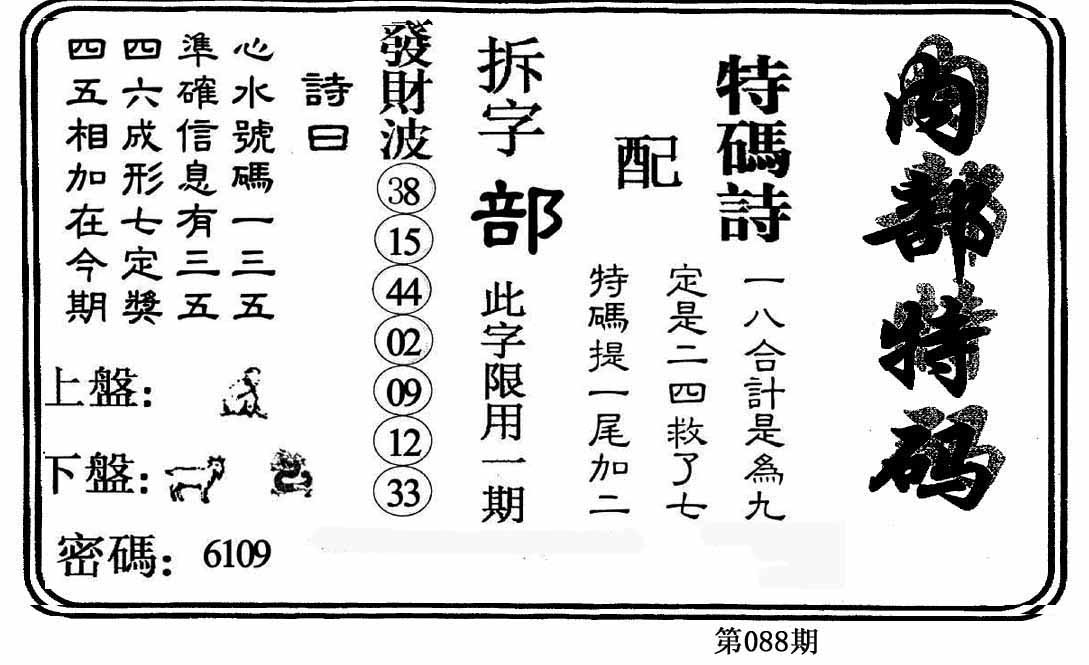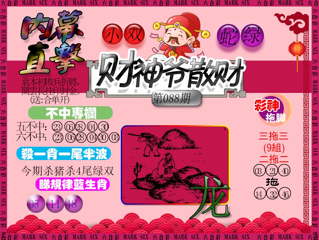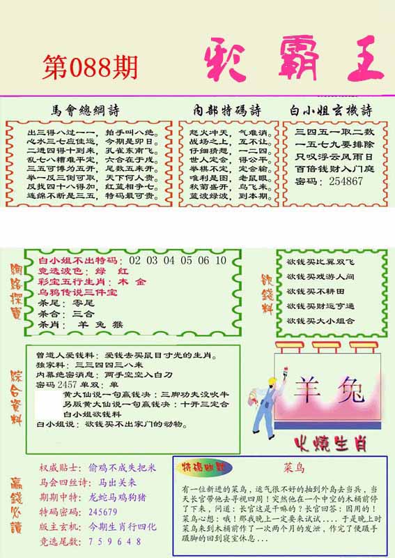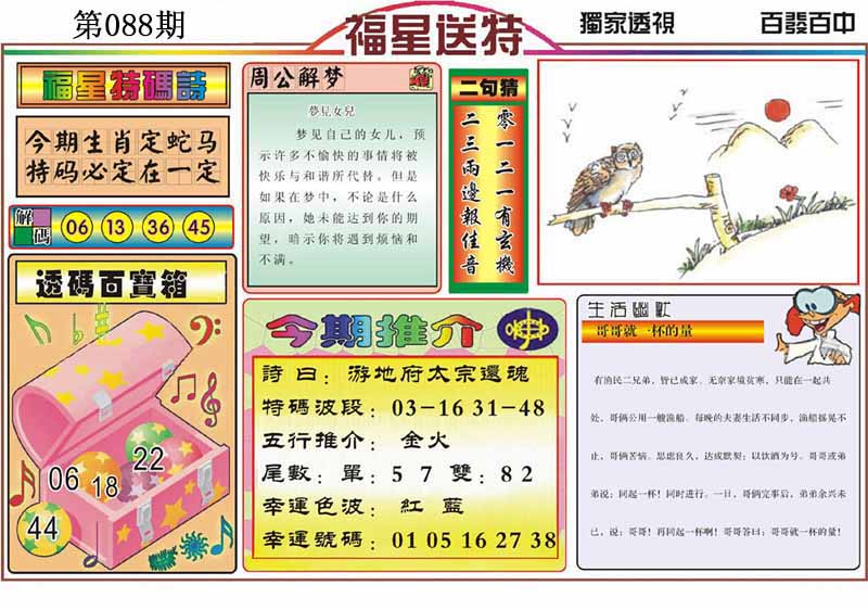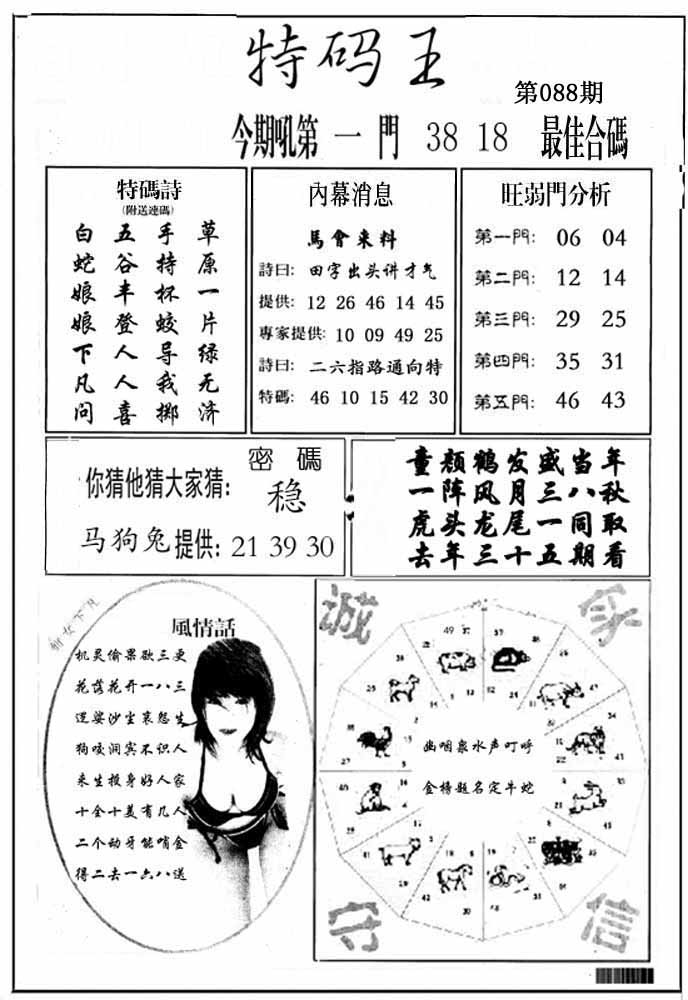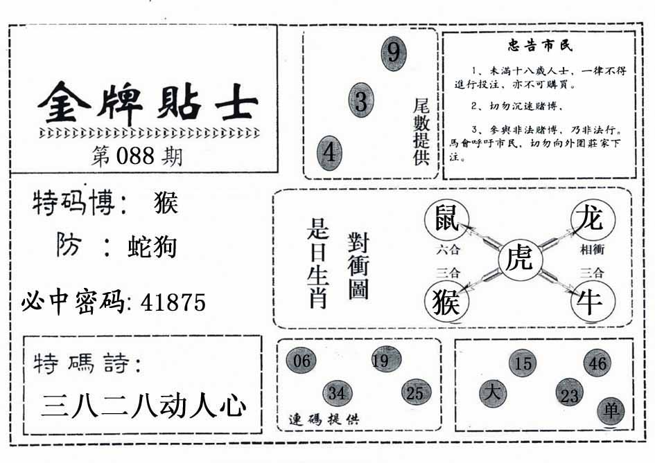 | 088期:《主攻:内幕规律平特肖:<狗>下50万》! | ||