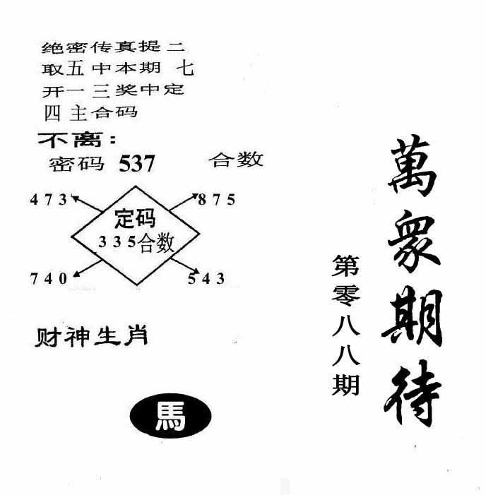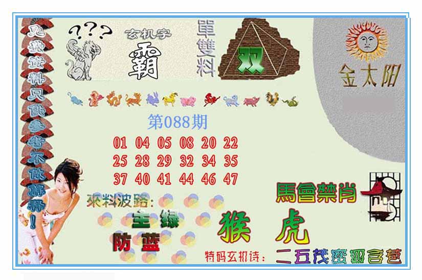 087期原创20码中特开:马37 06,07,30,31,01,28,24,46,23,38 34,40,18,35,37,12,33,17,13,10 |