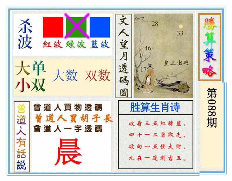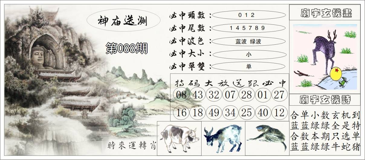 088期:【另版跑狗】开0 跑狗九肖:牛龙马猴猪虎羊鼠鸡 跑狗七肖:牛龙马猴猪虎羊 跑狗五肖:牛龙马猴猪 跑狗三肖:牛龙马 12码:12 35 29 43 31 03 04 02 05 07 30 49 | ||