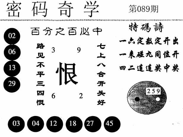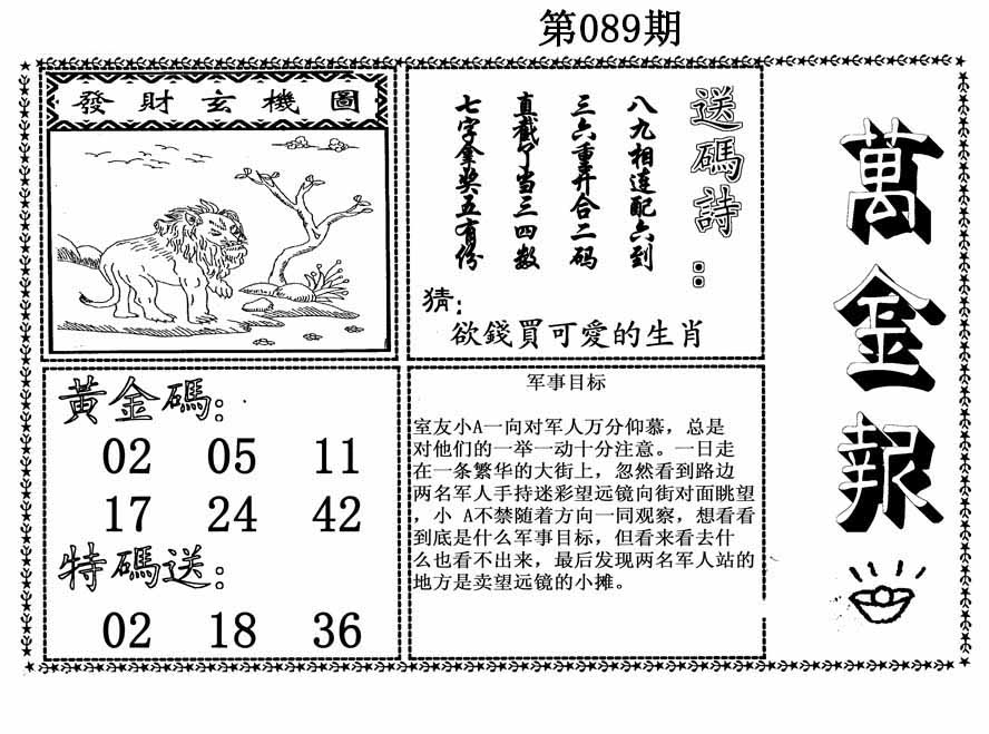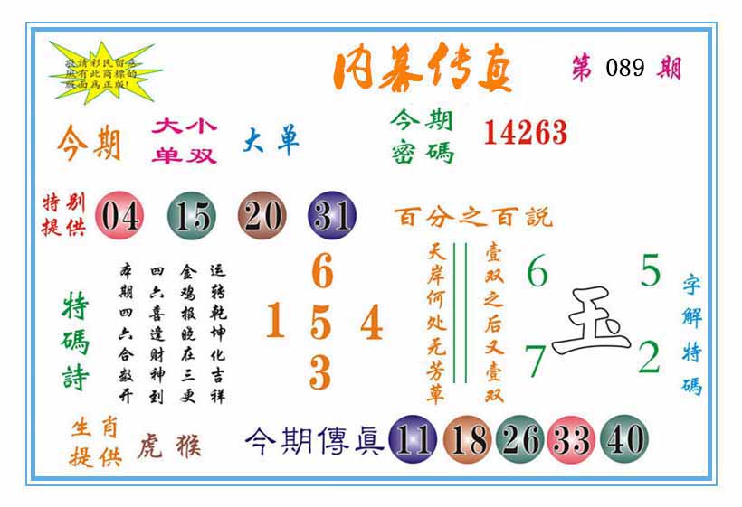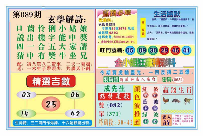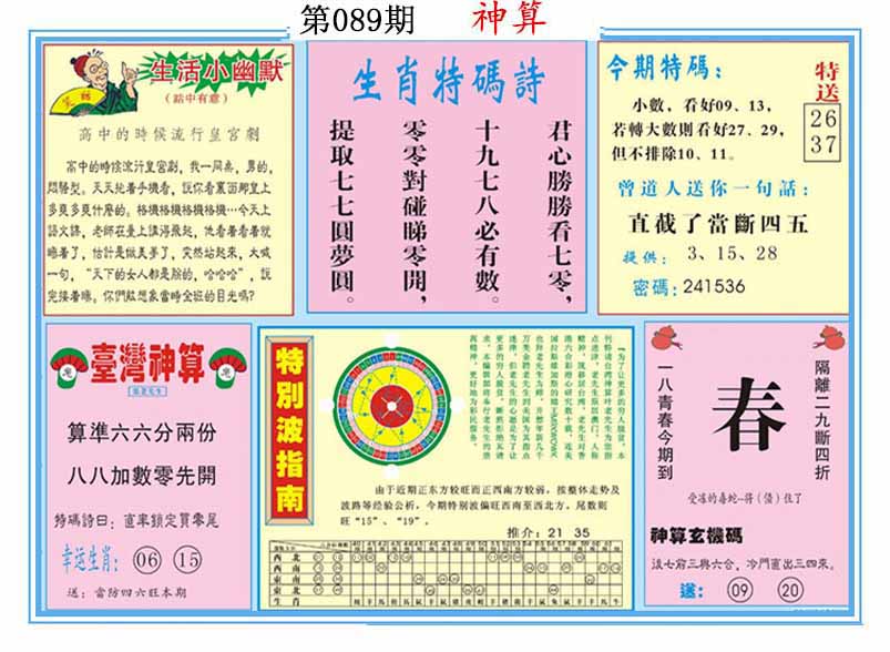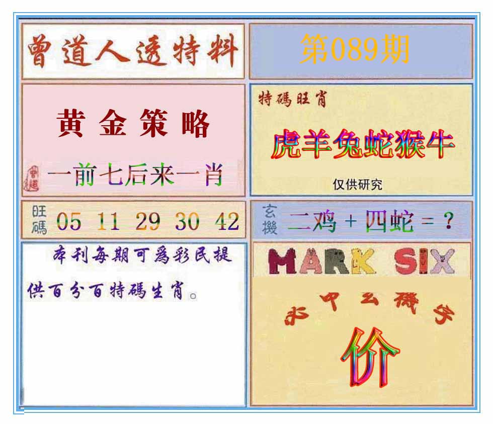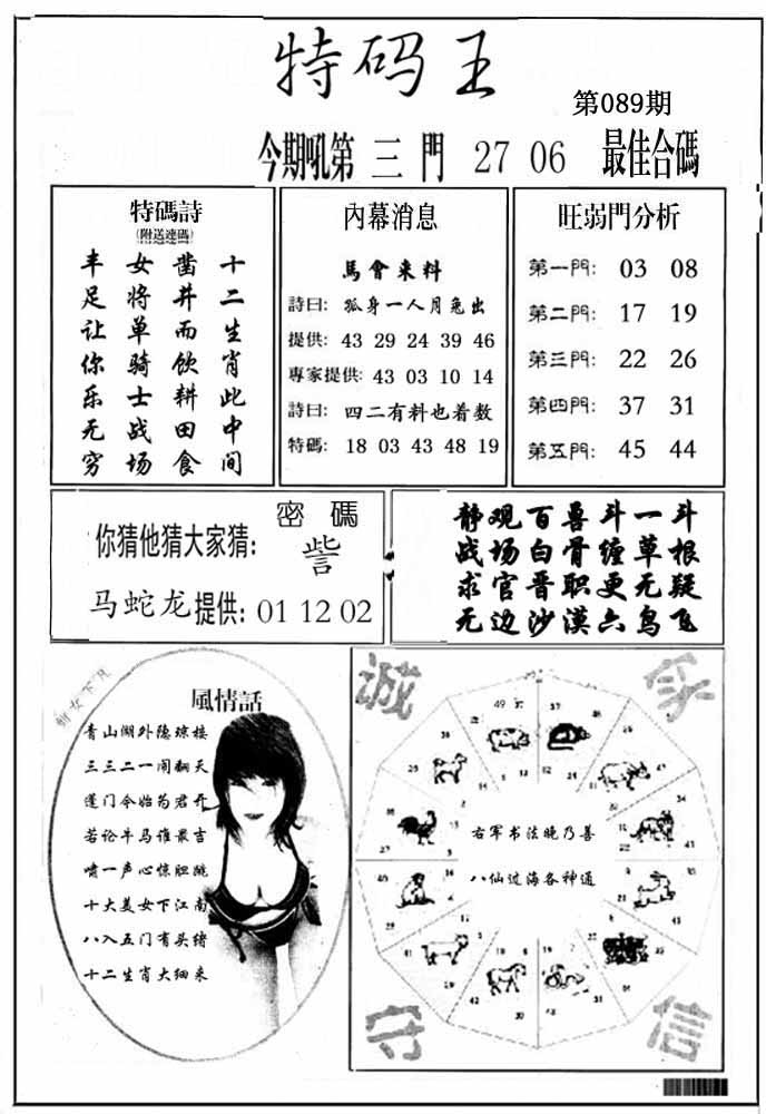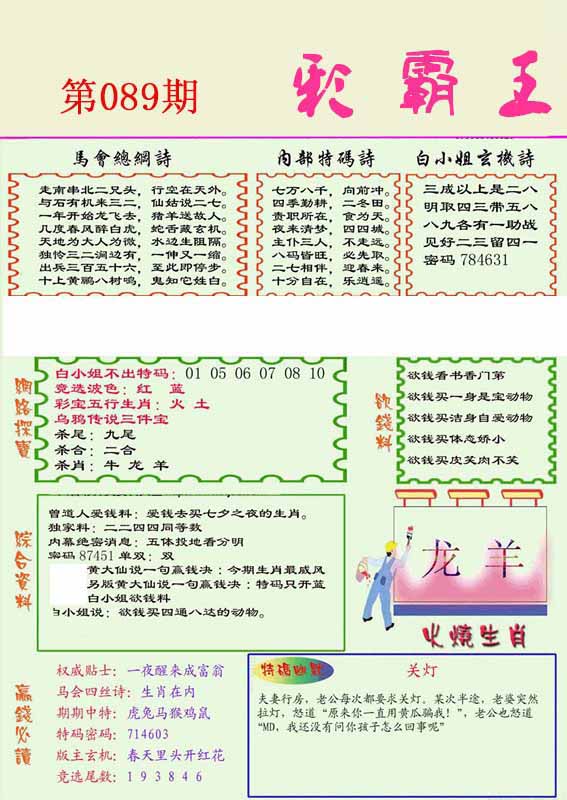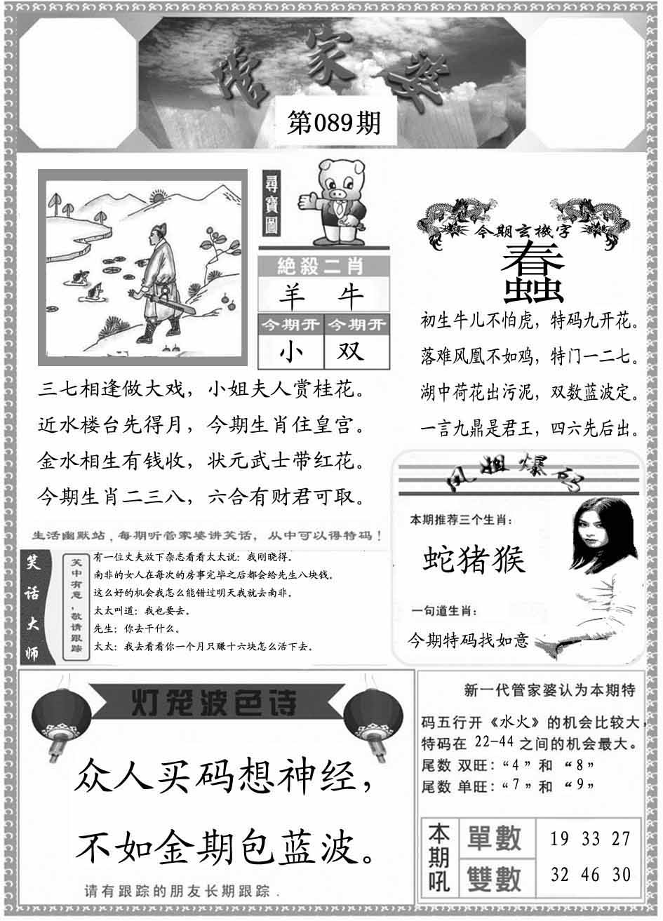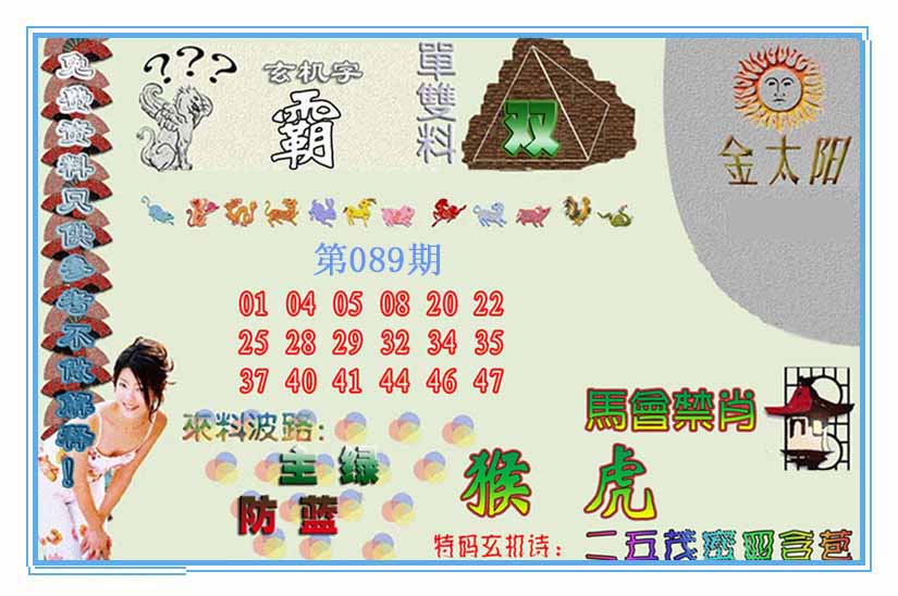 | 089期:《主攻:内幕规律平特肖:<猴>下50万》! | ||