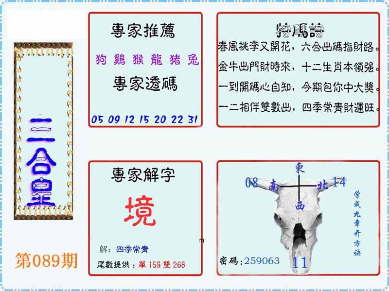 | 089期:神奇七尾【4 9 0 8 1 6 3】开:?00 |