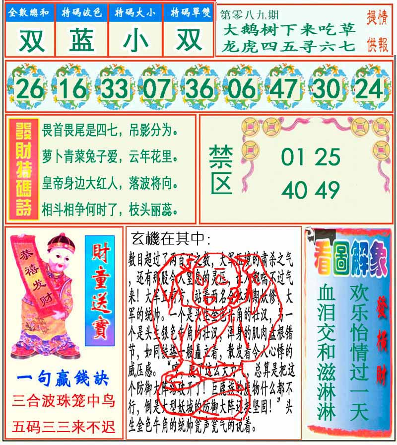 | 075期:精准五不中【16 26 49 30 44】牛30 |
