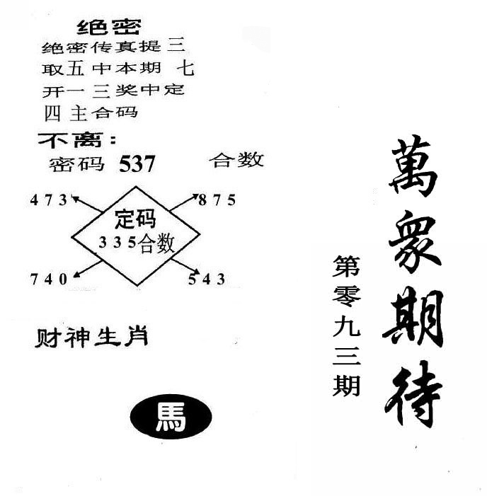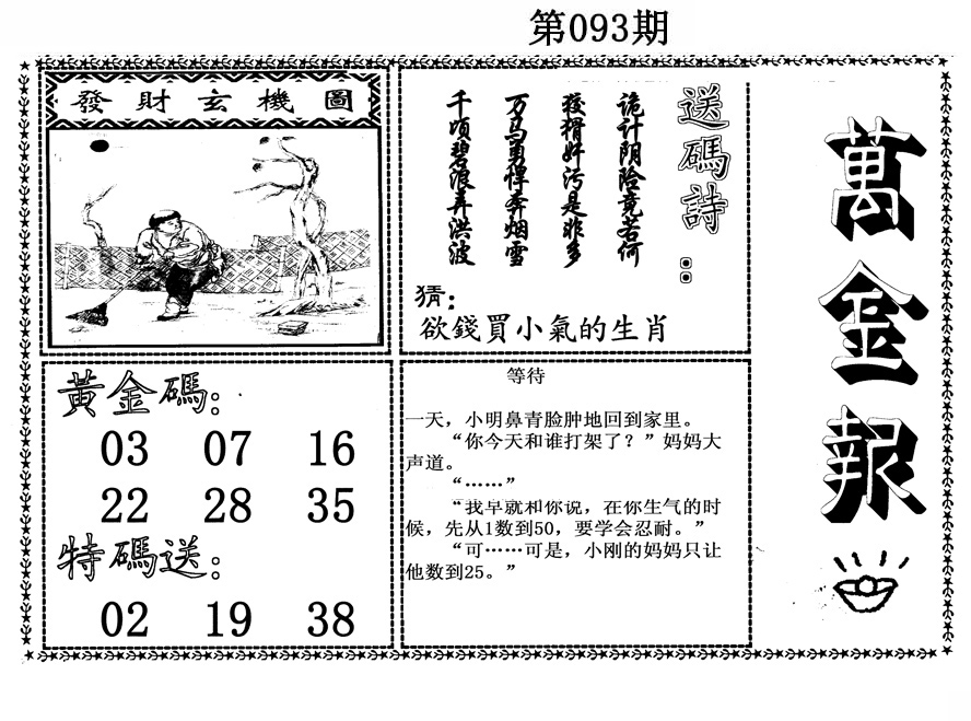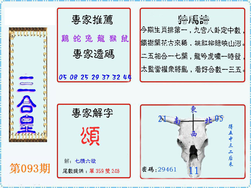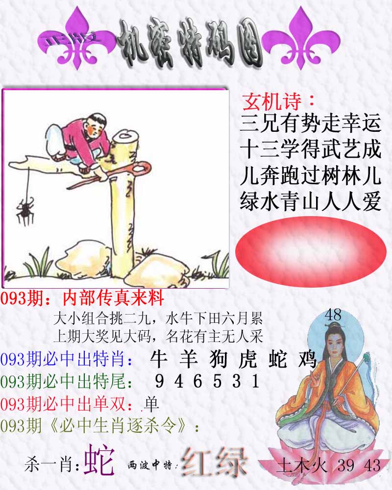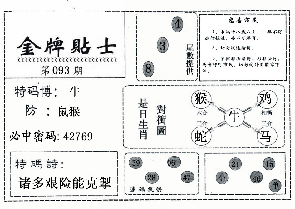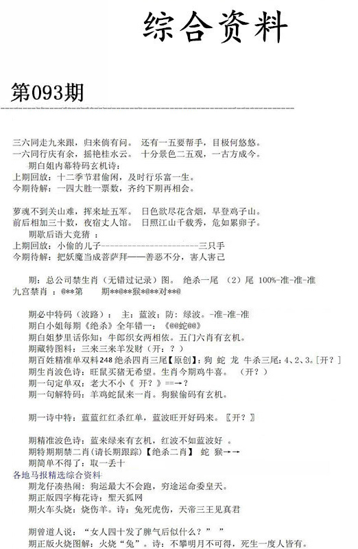 | 093期:《主攻:内幕规律平特肖:<牛>下50万》! | ||