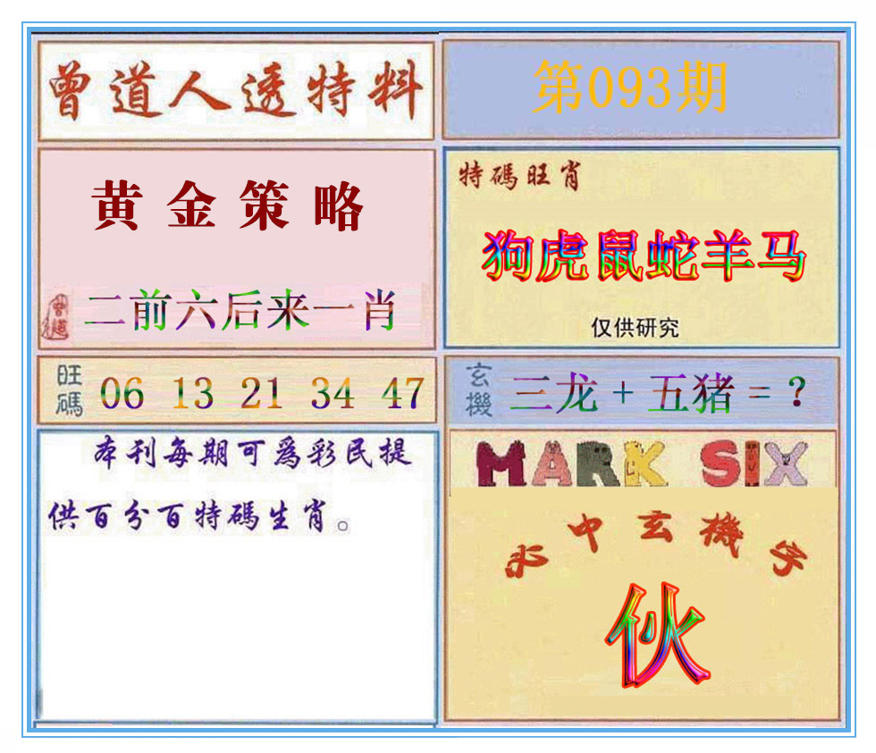 093期推荐六肖:<羊牛马龙兔鸡>内幕资料请大胆下注! | ||