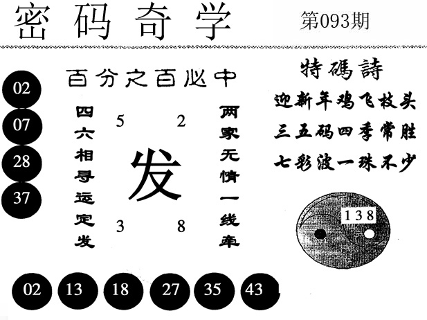 | 093期推荐五码:<11 02 38 23 16>大胆下注十万让你赚百万!