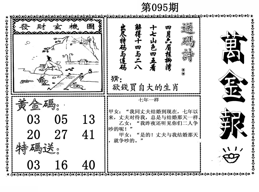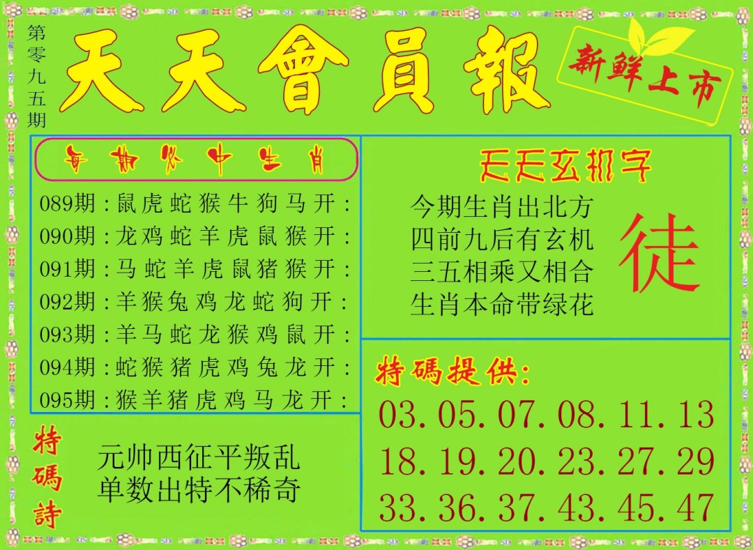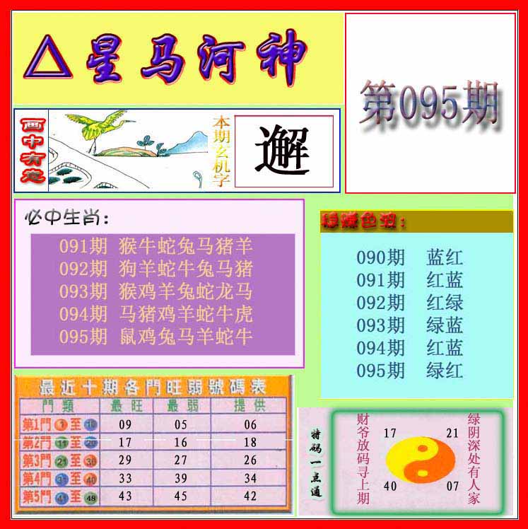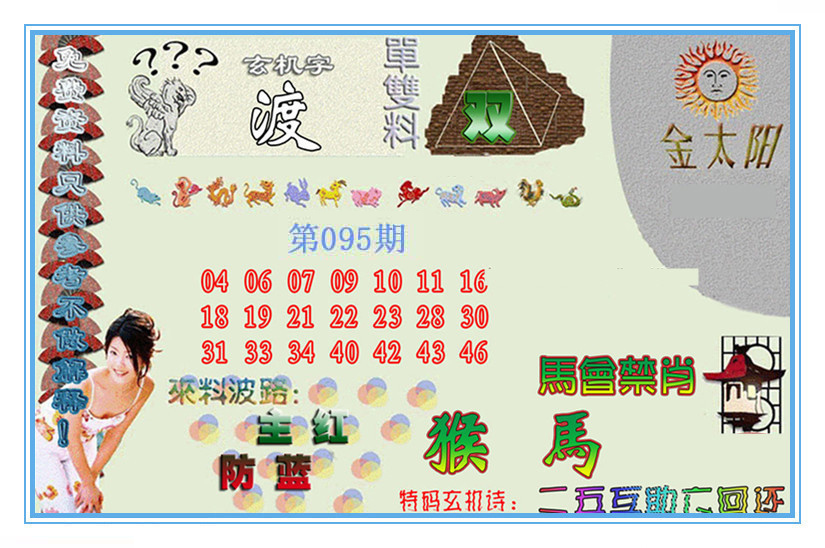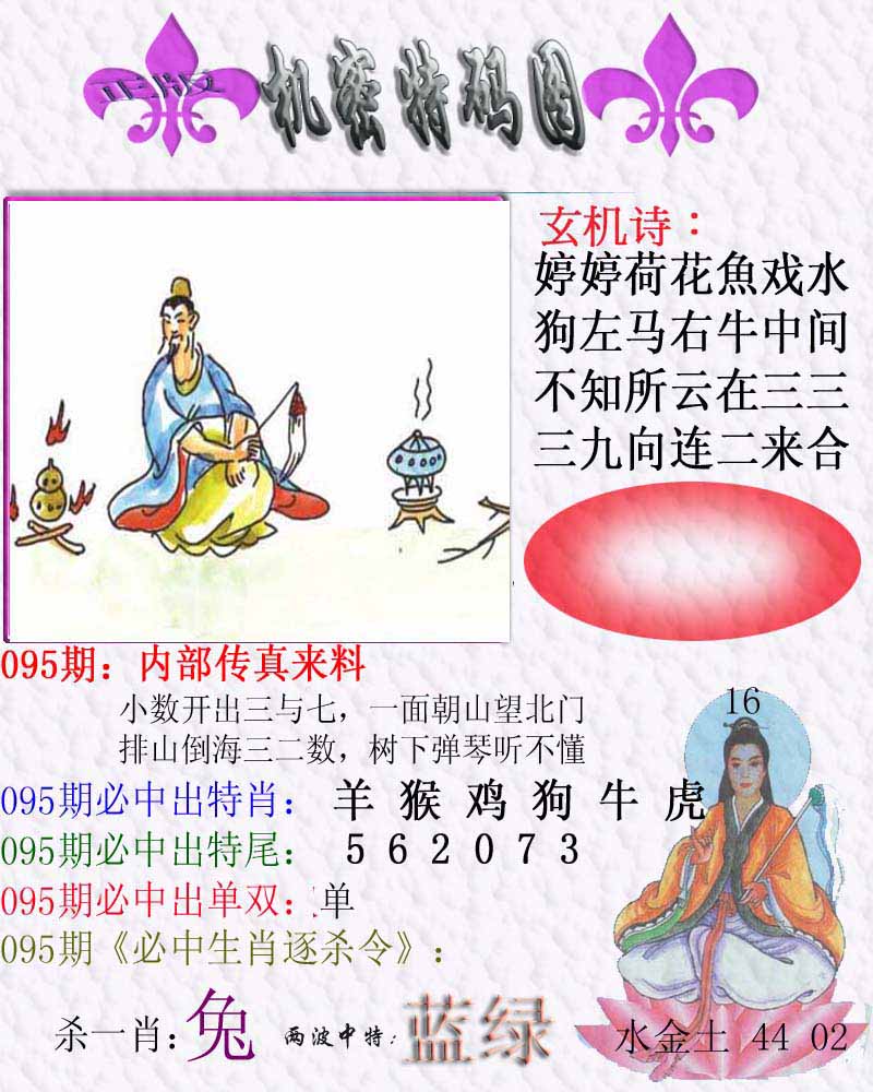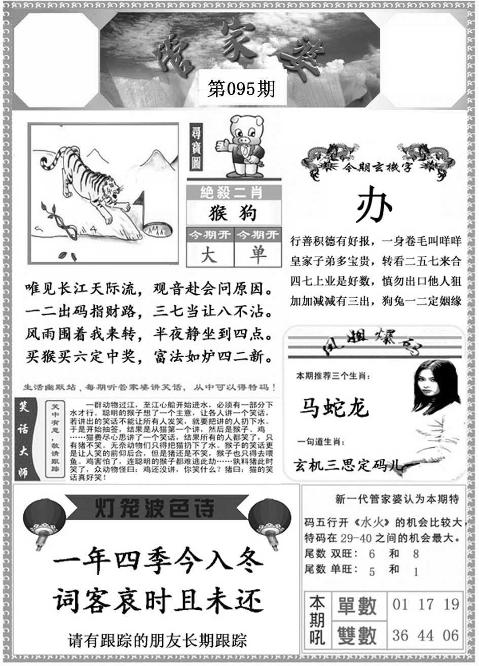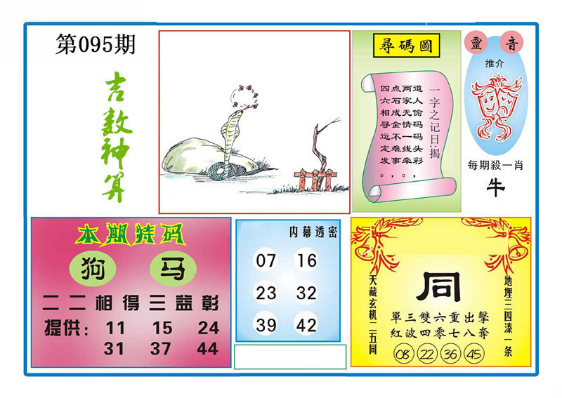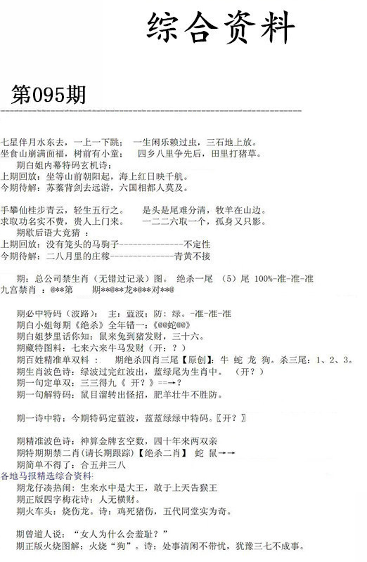 | 095期:《主攻:内幕规律平特肖:<马>下50万》! | ||