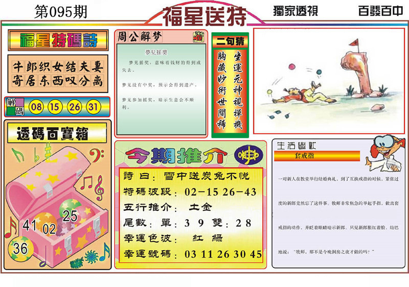 | 095期:精准五不中【34 27 26 46 49】?00 |
