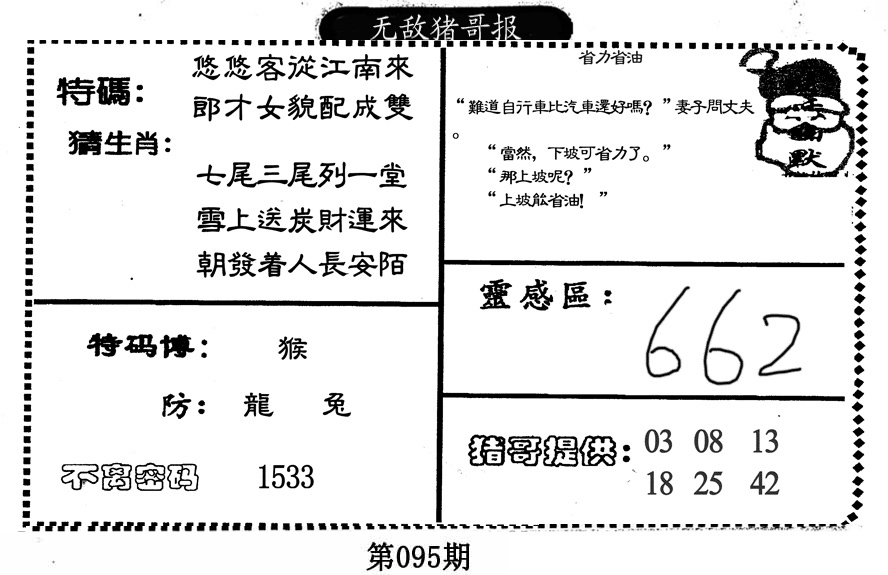 | 095期:神奇七尾【1 3 0 6 2 8 7】开:?00 |