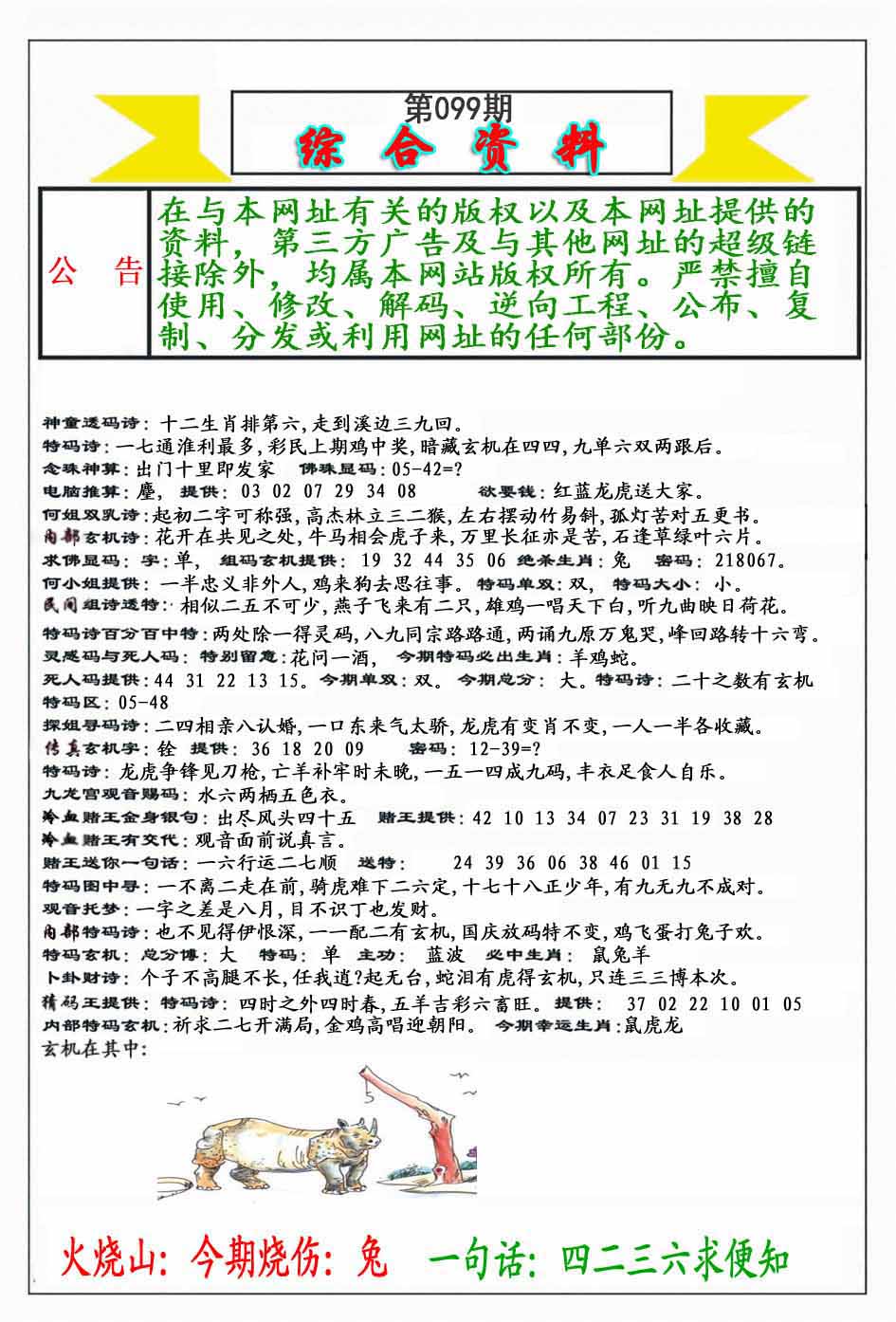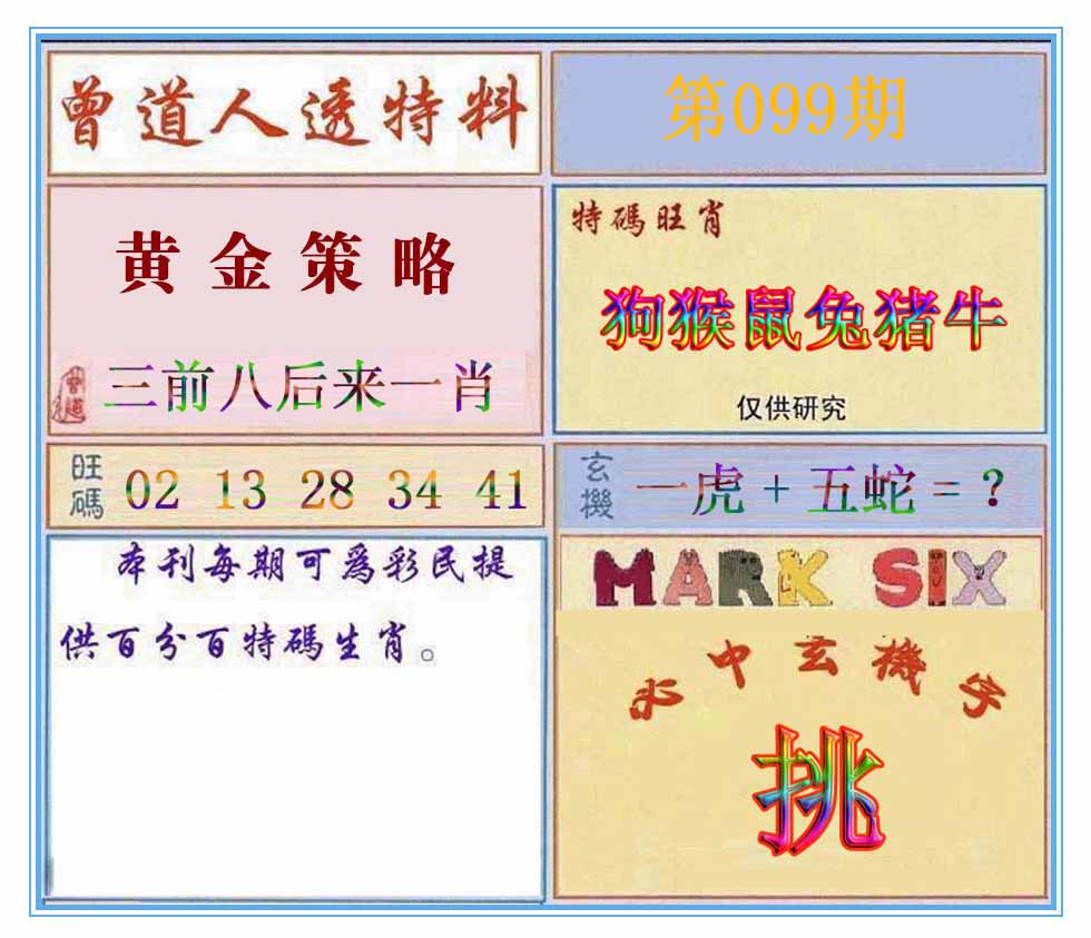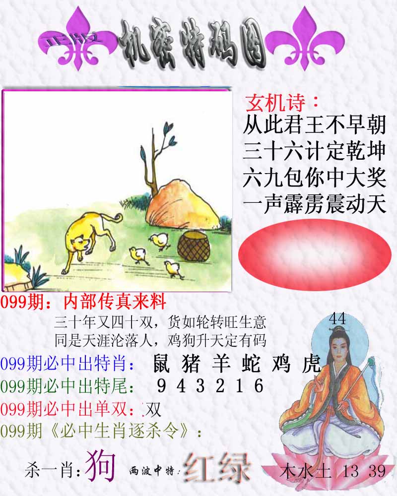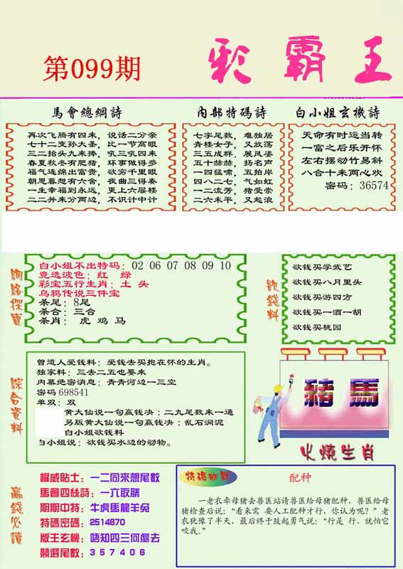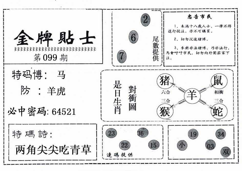 | 099期:《主攻:内幕规律平特肖:<猴>下50万》! | ||