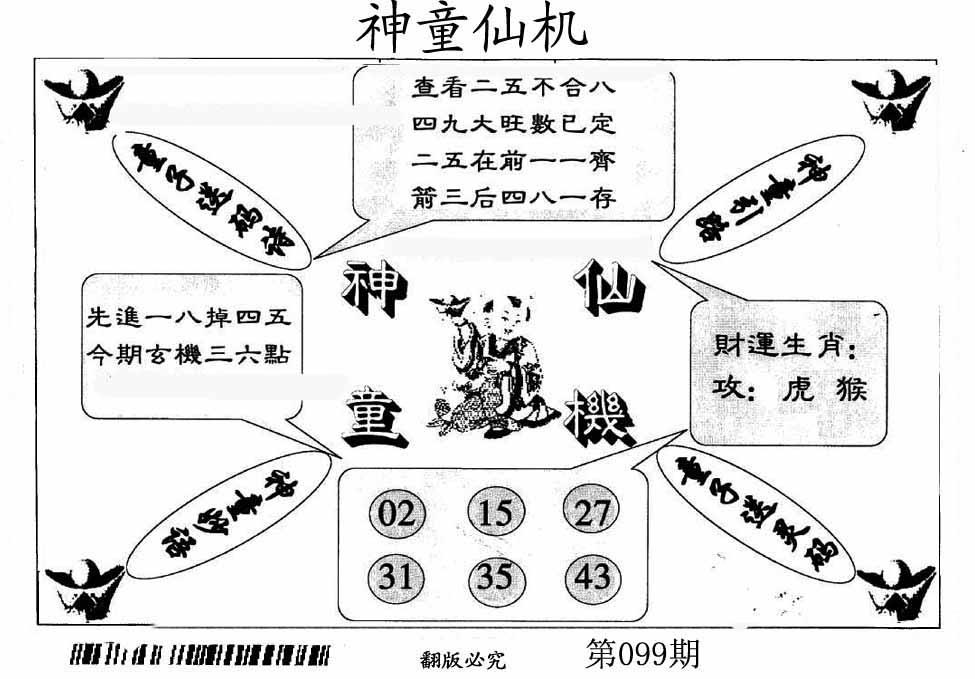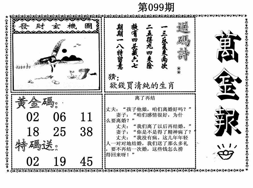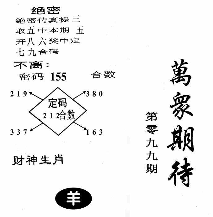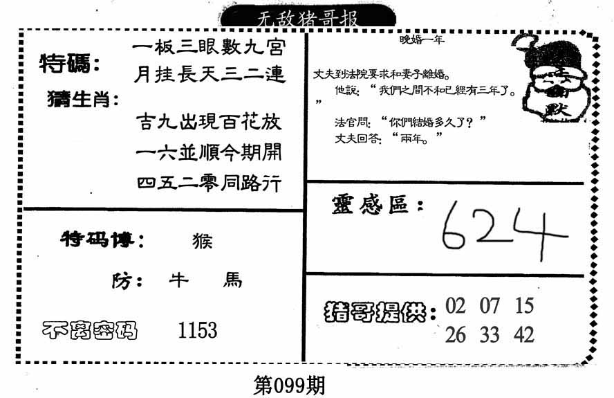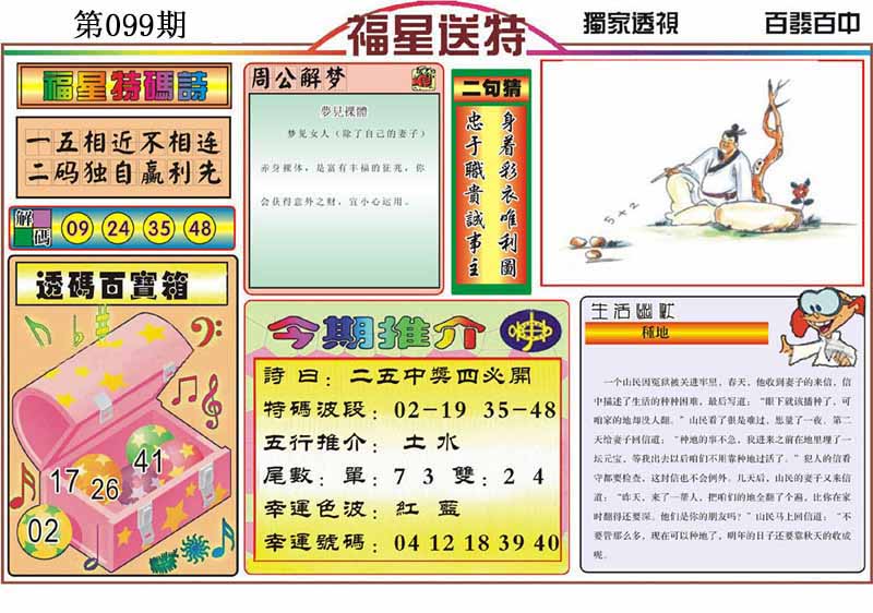| 099期:《主攻:内幕规律平特肖:<猴>下50万》! | ||