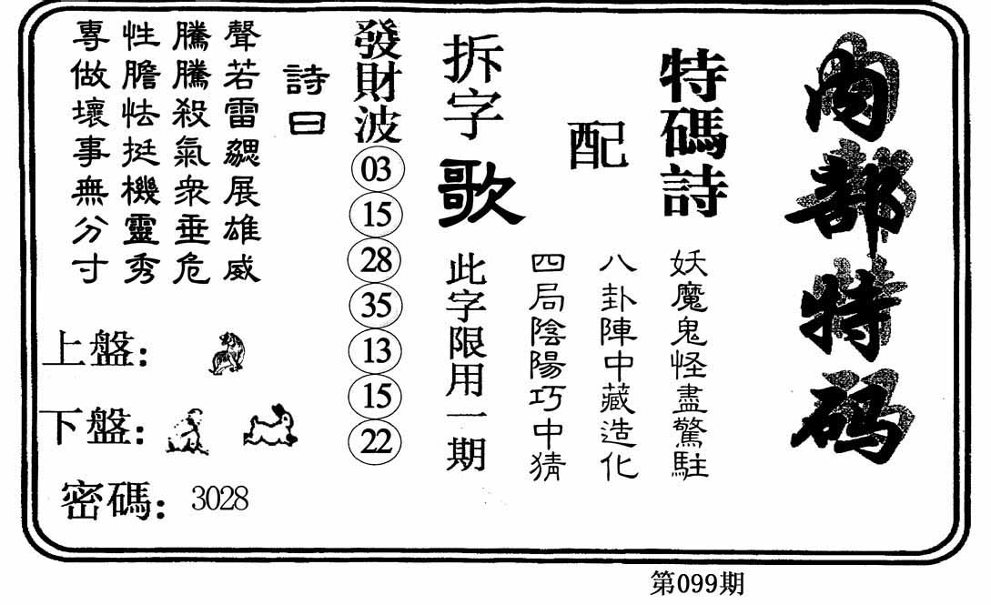 | 096期单双中特[单单单]开兔28 |