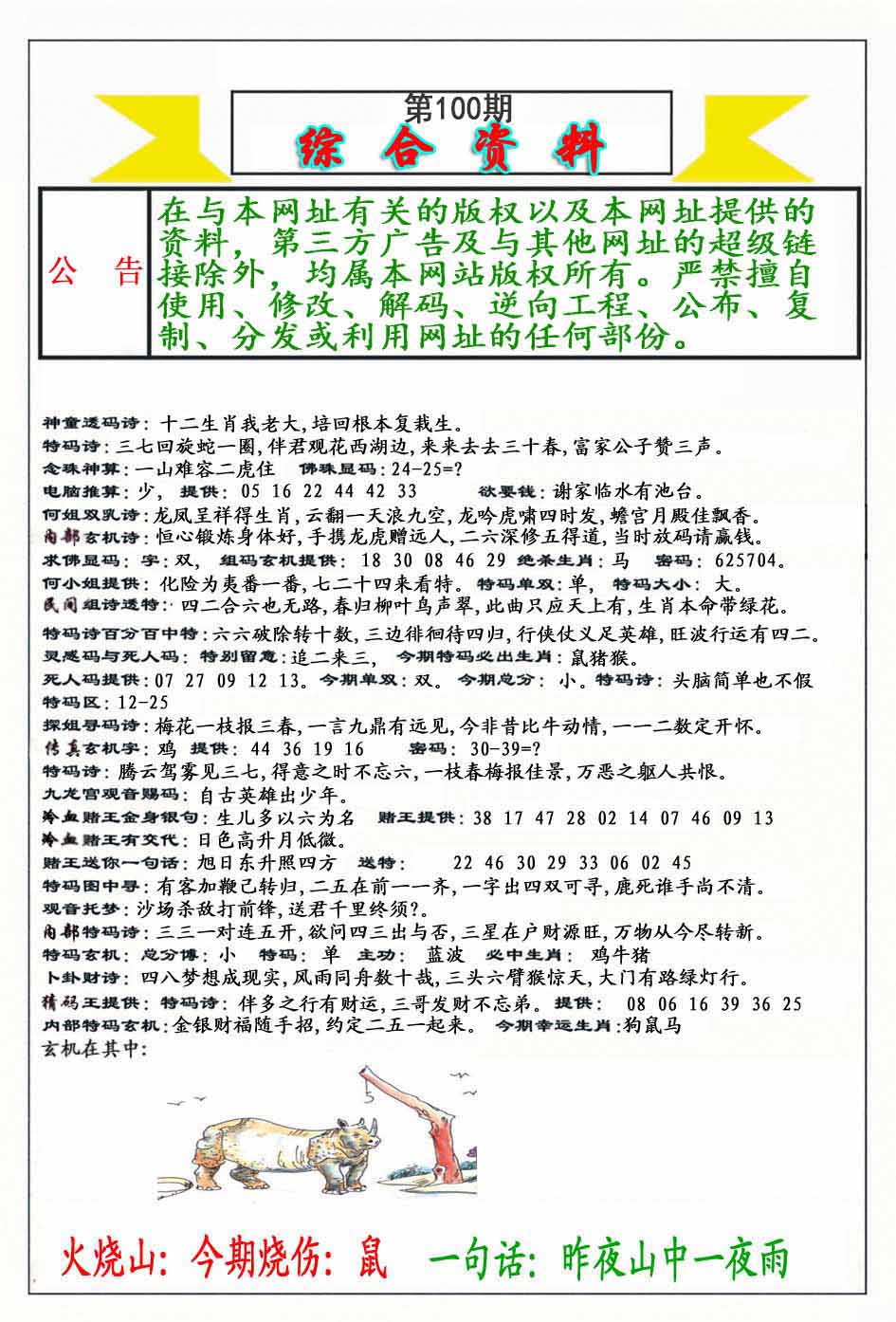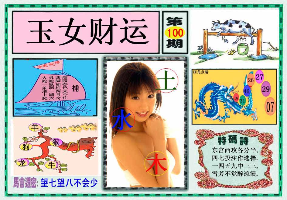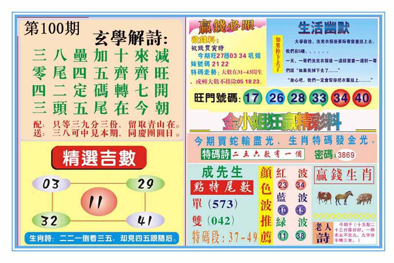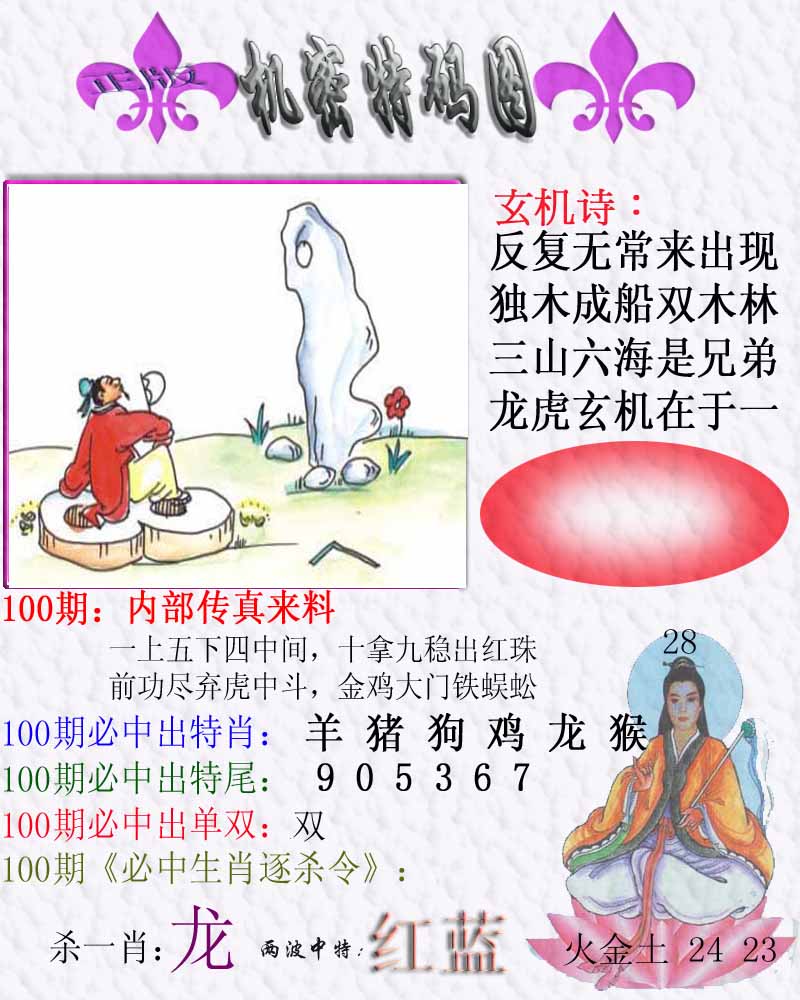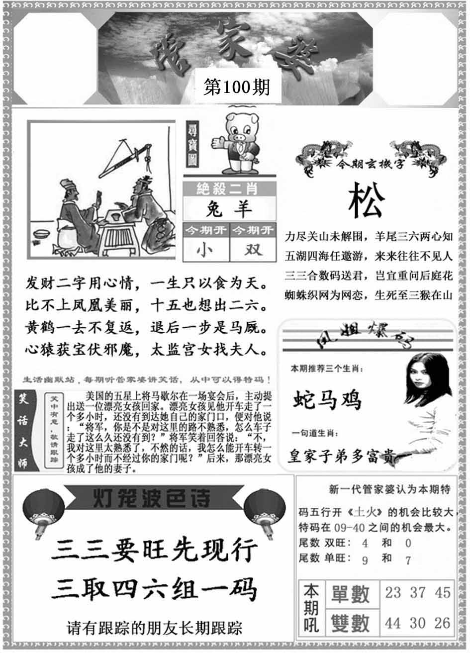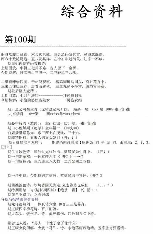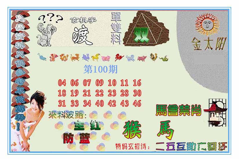 | 100期:《主攻:内幕规律平特肖:<兔>下50万》! | ||