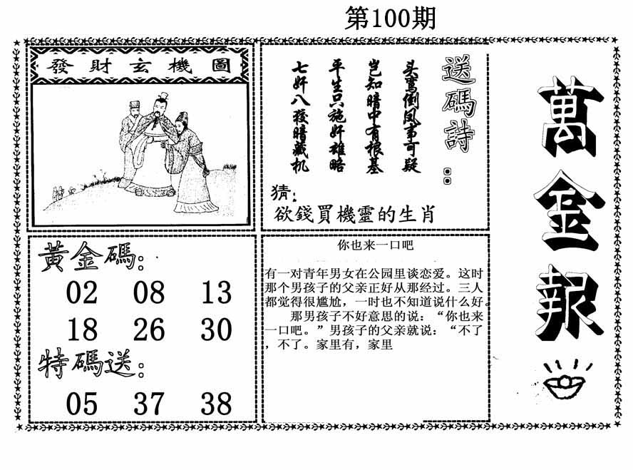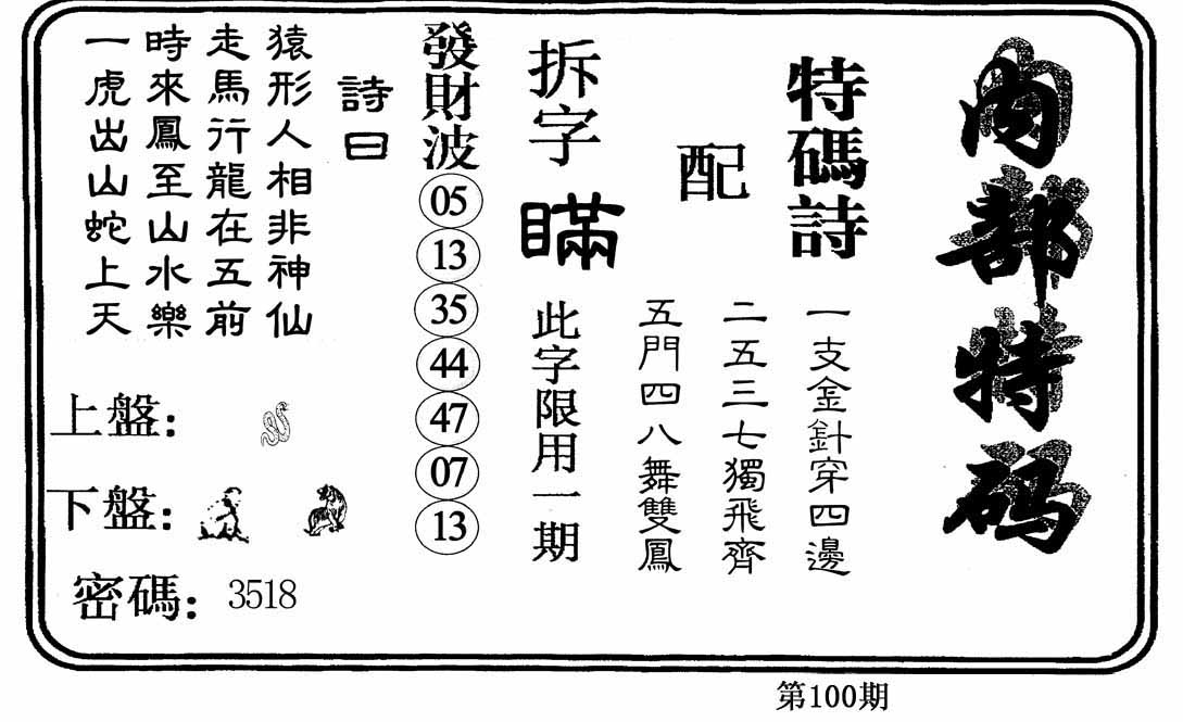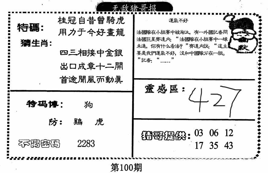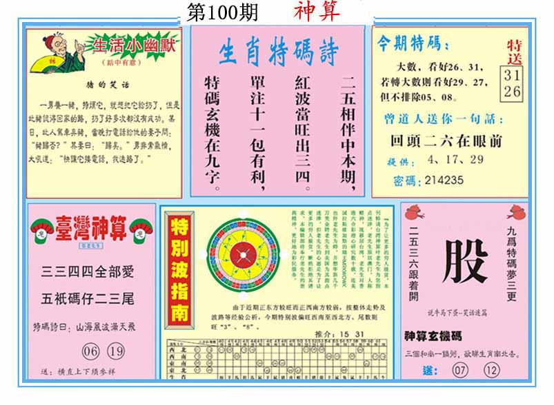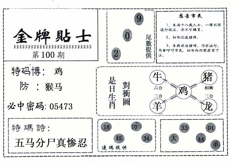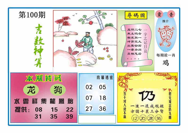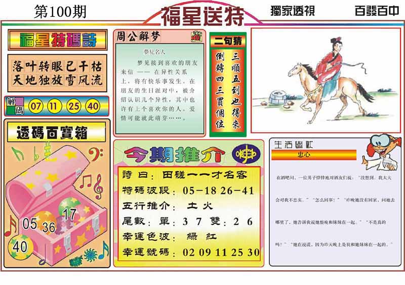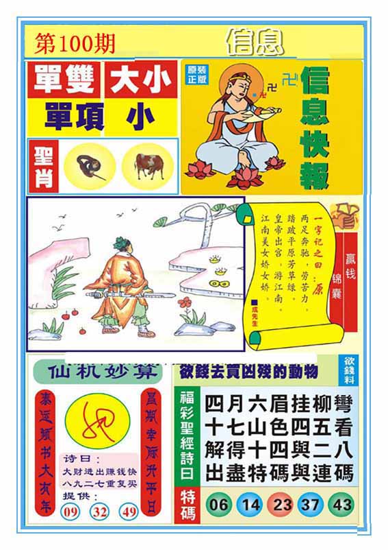 | 100期:《主攻:内幕规律平特肖:<兔>下50万》! | ||