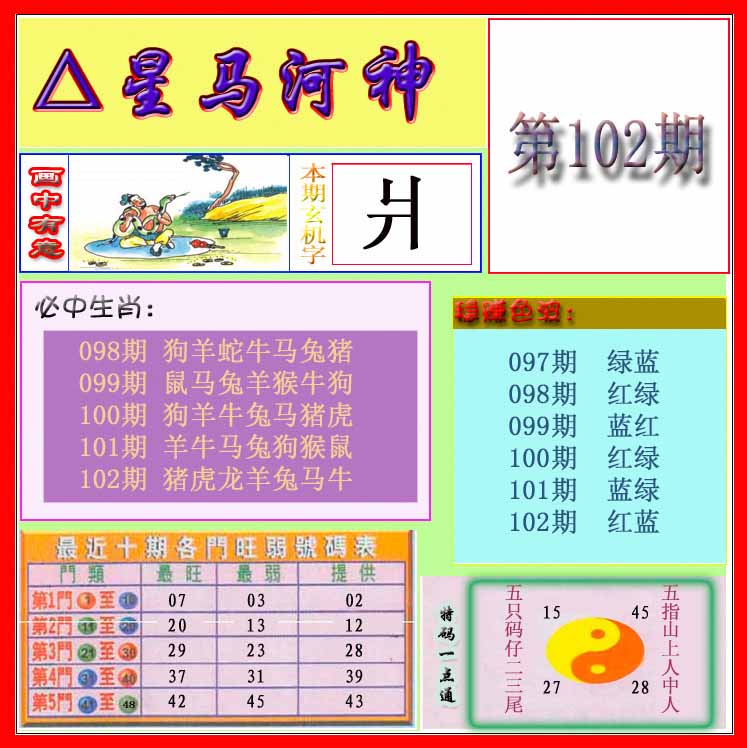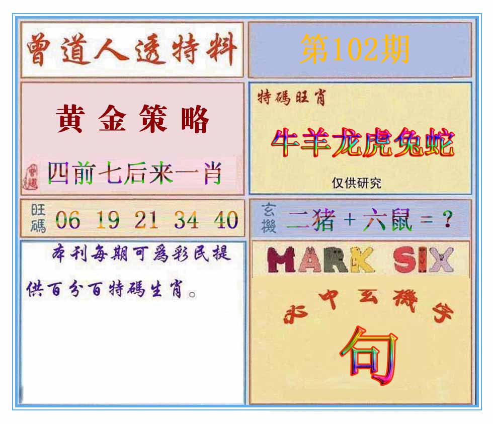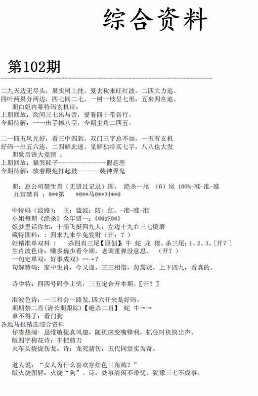 102期推荐六肖:<羊龙猪马蛇虎>内幕资料请大胆下注! | ||