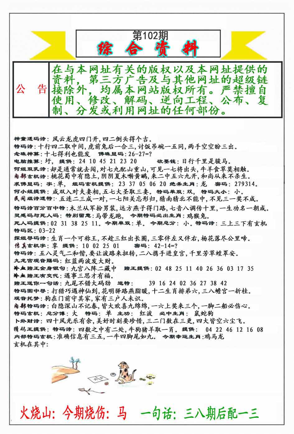 | 102期内部①肖①码:<马36->信心百分百包您中奖哦! | ||