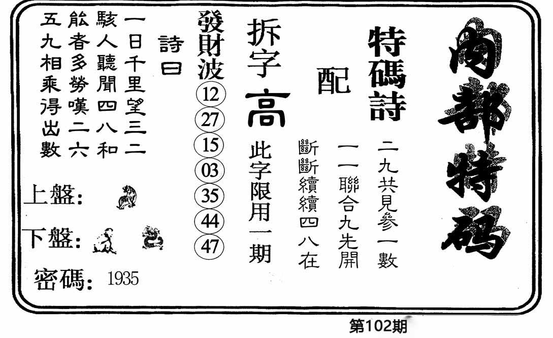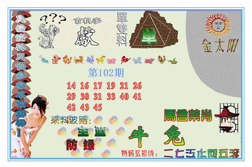 | 102期单双中特[单单单]开?00 |