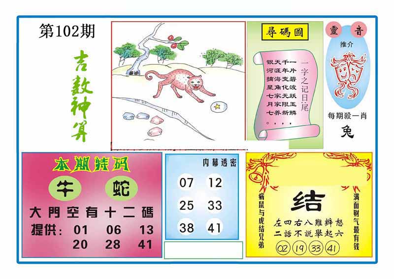 | 102期:《主攻:内幕规律平特肖:<蛇>下50万》! | ||