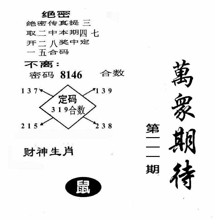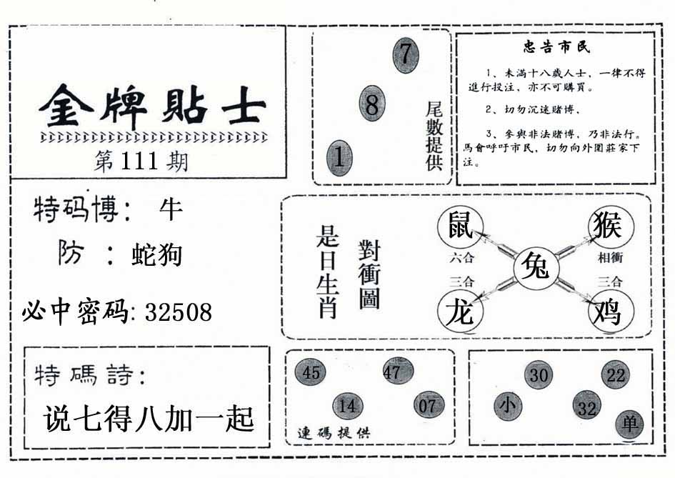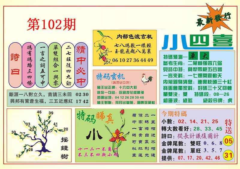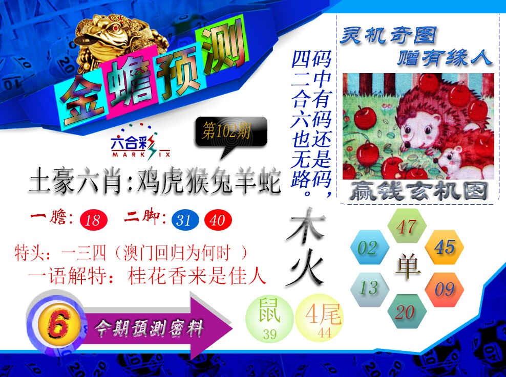 | 101期:神奇七尾【9 2 1 3 4 7 0】开:鼠31 |