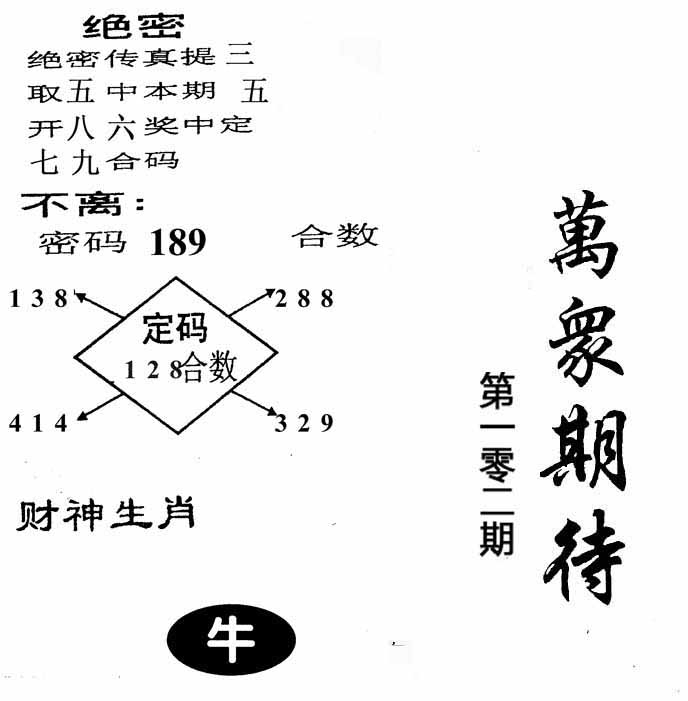 | 095期:精准五不中【34 27 26 46 49】牛06 |