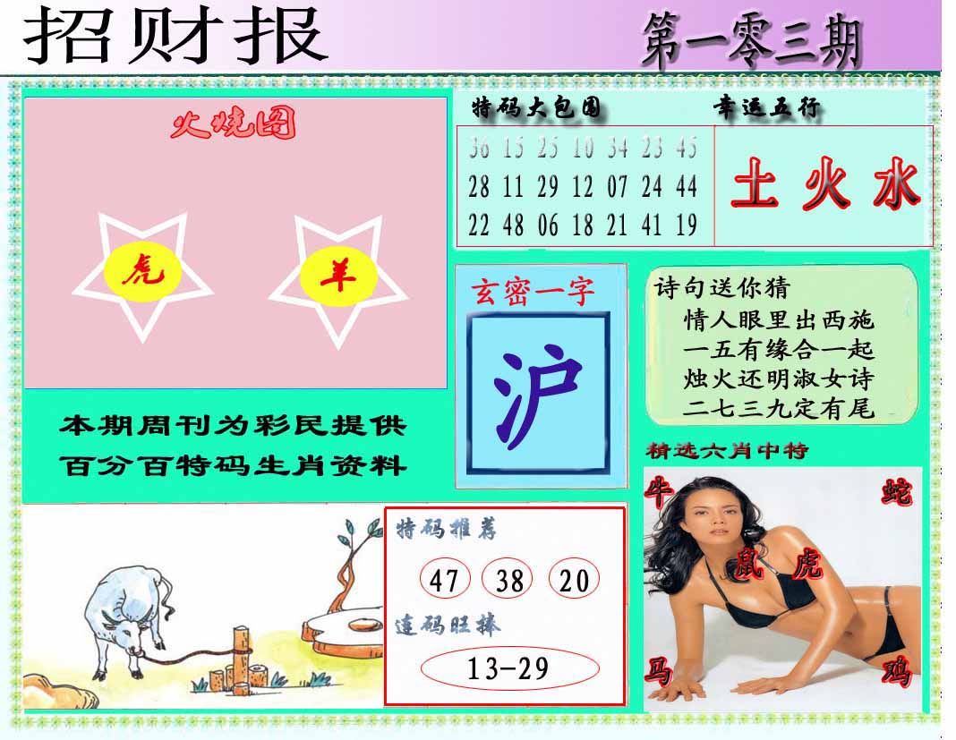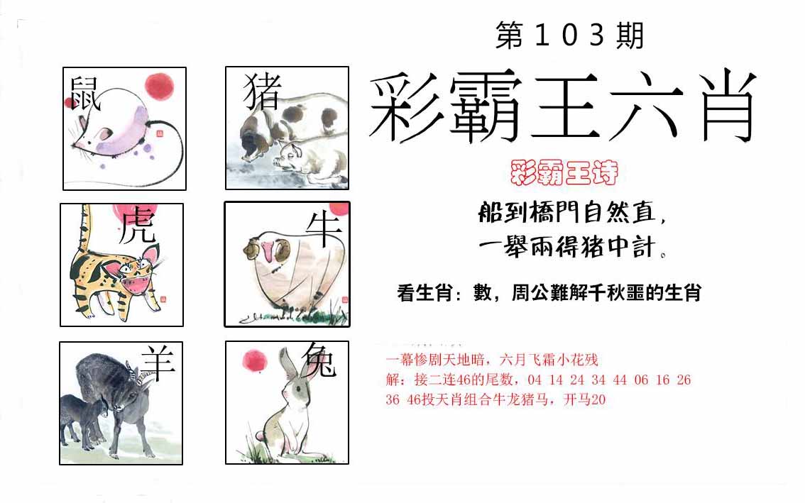 103期推荐六肖:<羊牛鼠猪鸡马>内幕资料请大胆下注! | ||