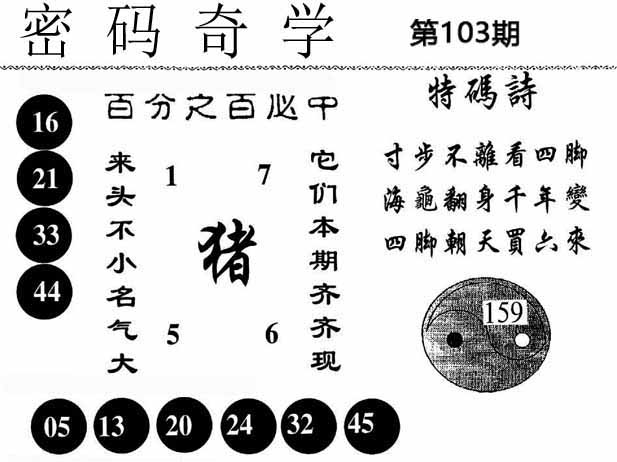 | 103期推荐五码:<22 07 04 45 25>大胆下注十万让你赚百万!