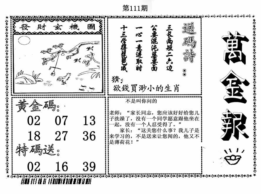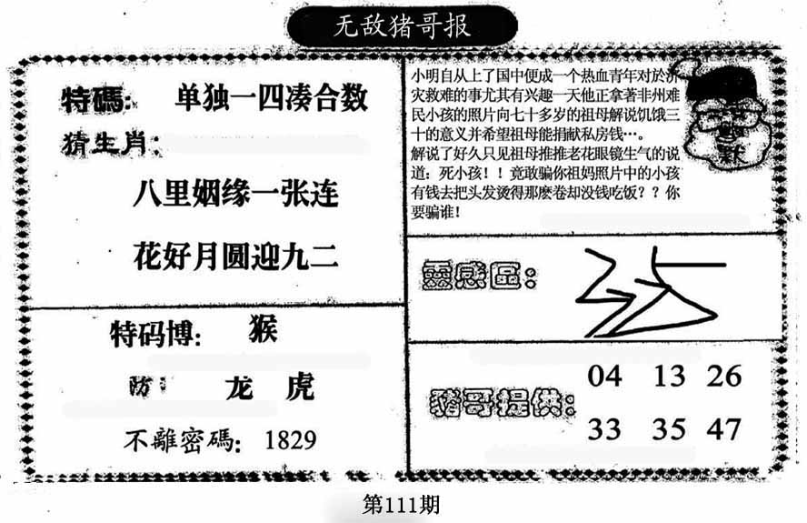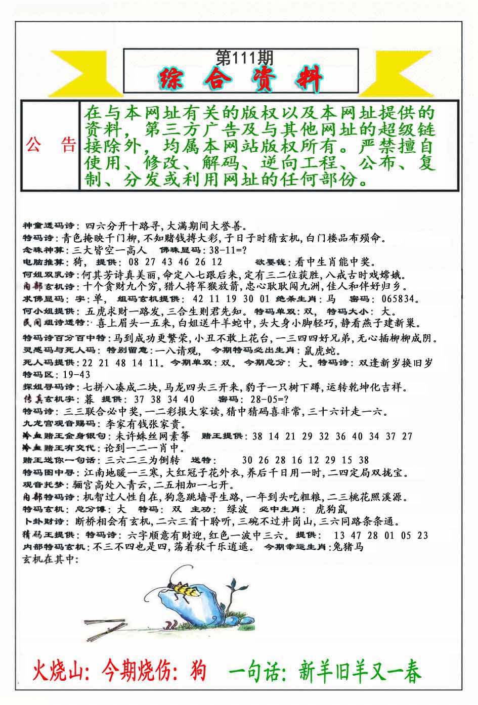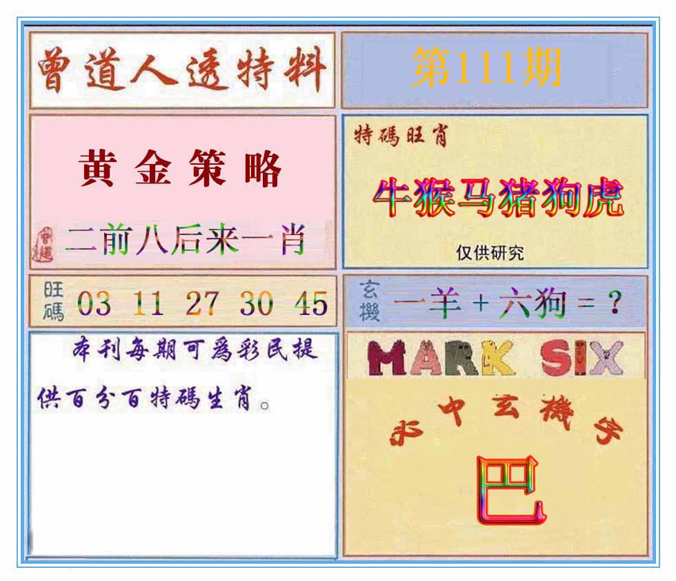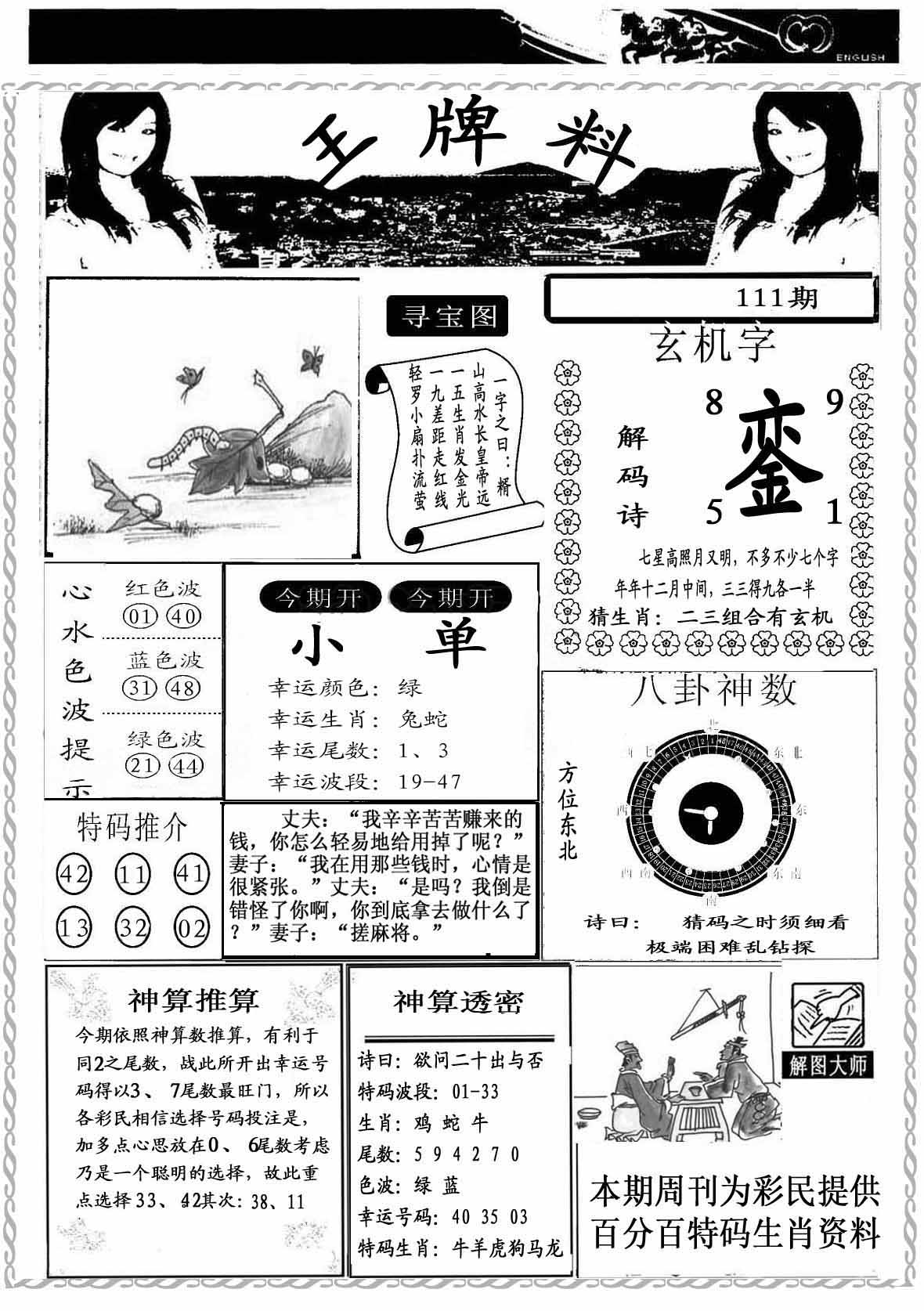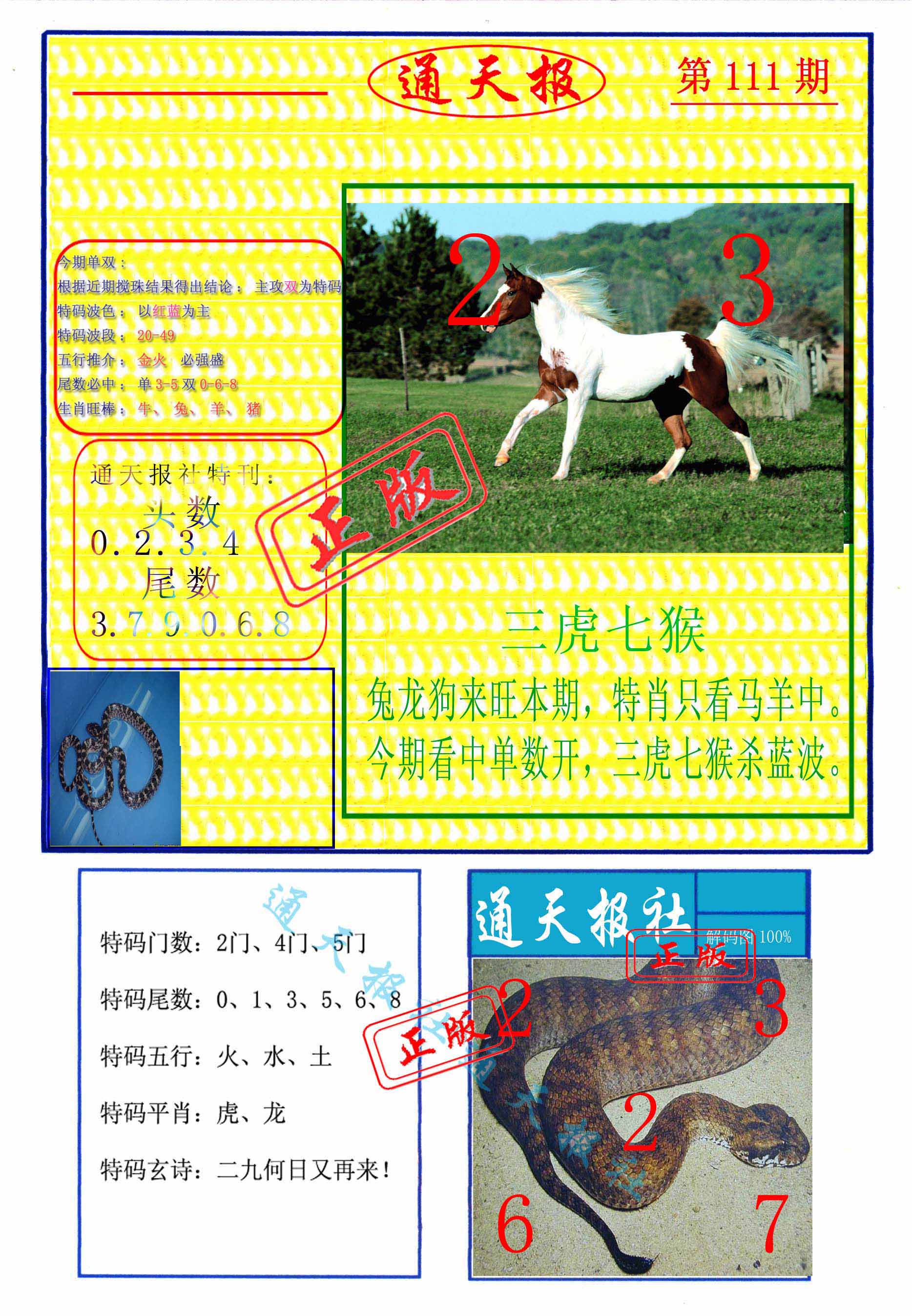 | 110期:《主攻:内幕规律平特肖:<马>下50万》! | ||