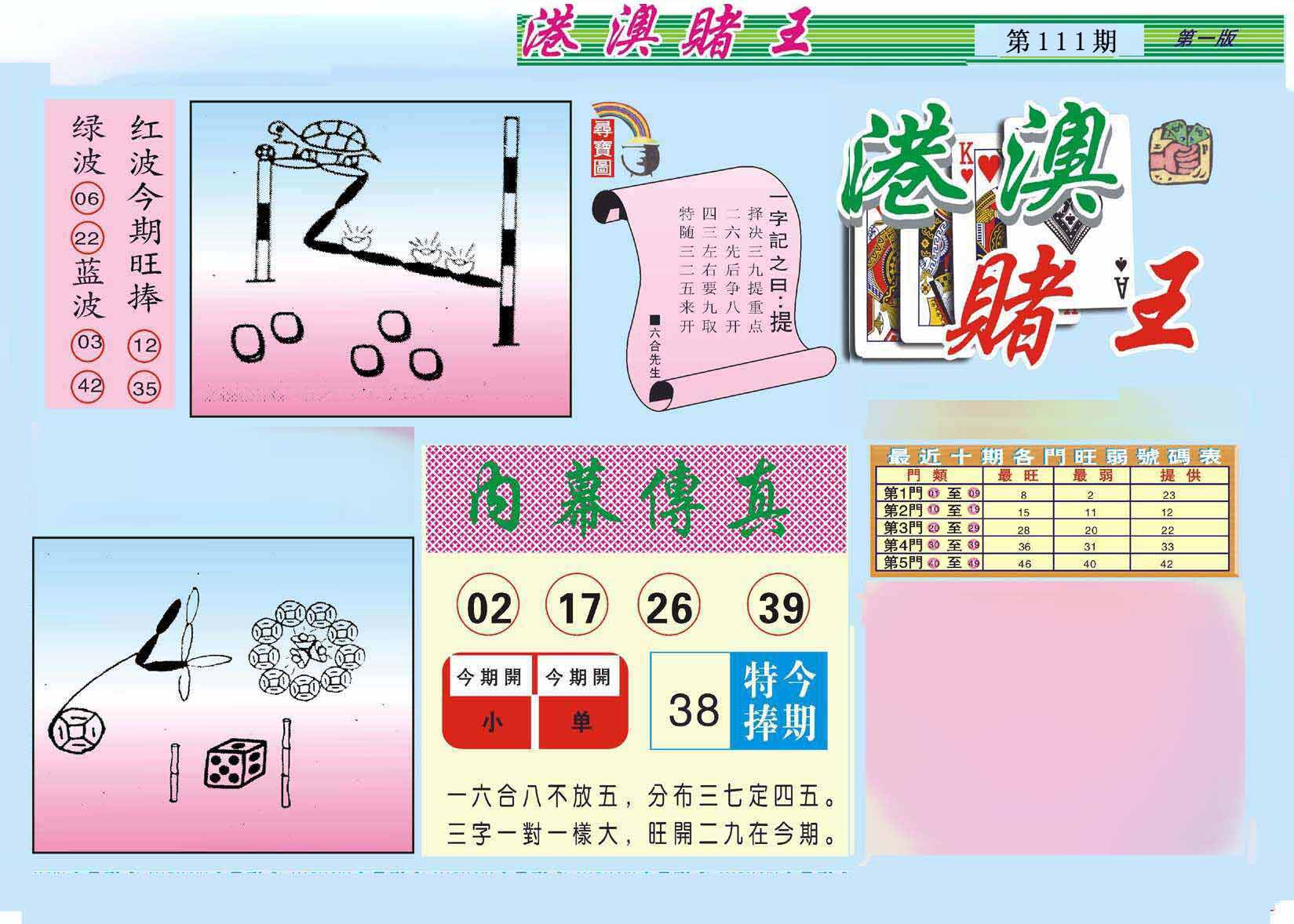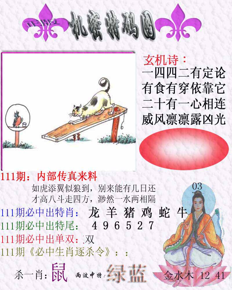 110期:【另版跑狗】开0 跑狗九肖:龙羊虎猪蛇猴马鼠狗 跑狗七肖:龙羊虎猪蛇猴马 跑狗五肖:龙羊虎猪蛇 跑狗三肖:龙羊虎 12码:03 08 01 48 34 13 14 38 20 15 02 04 | ||