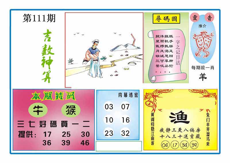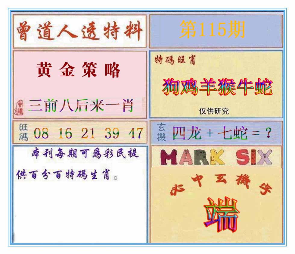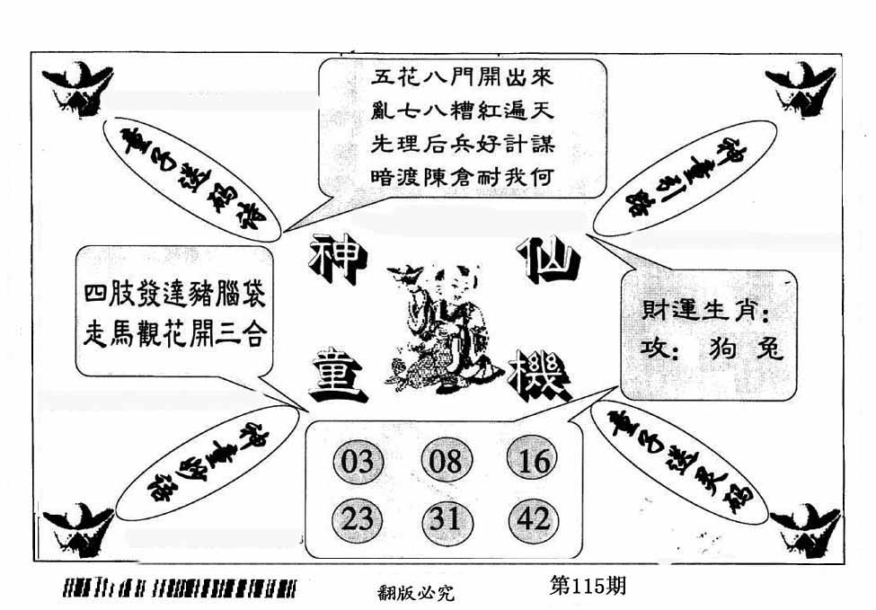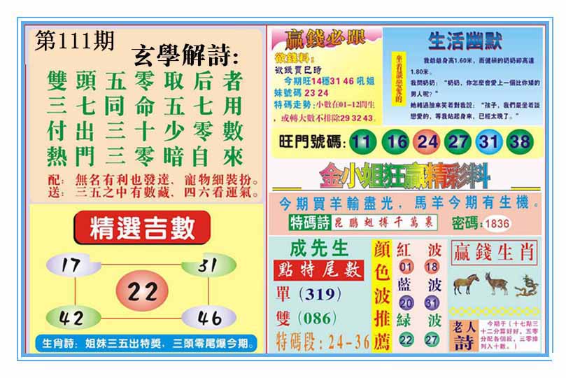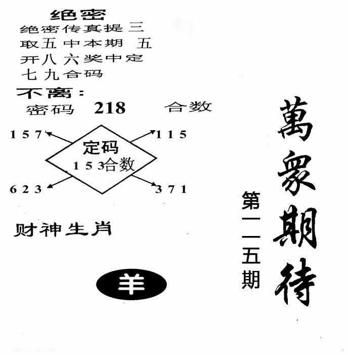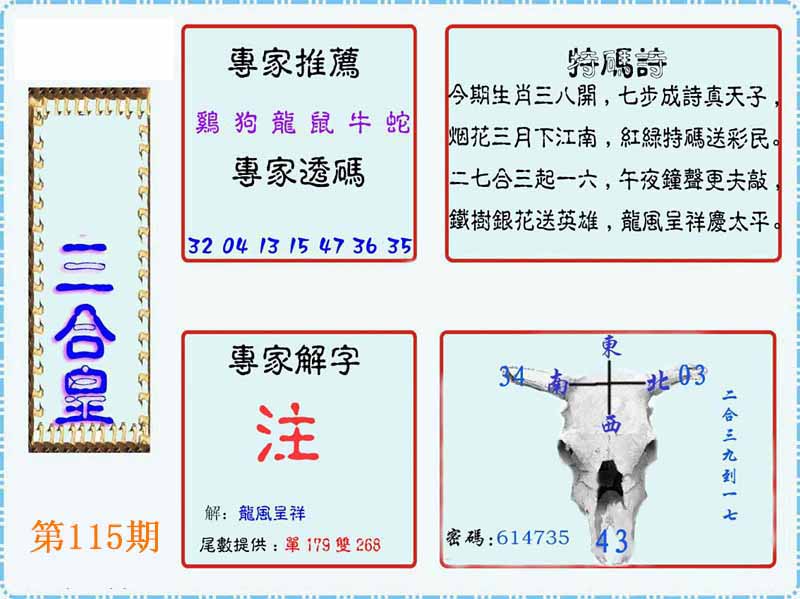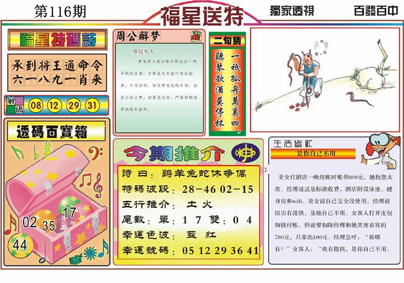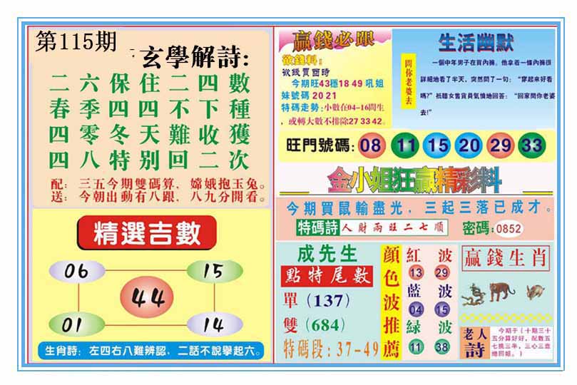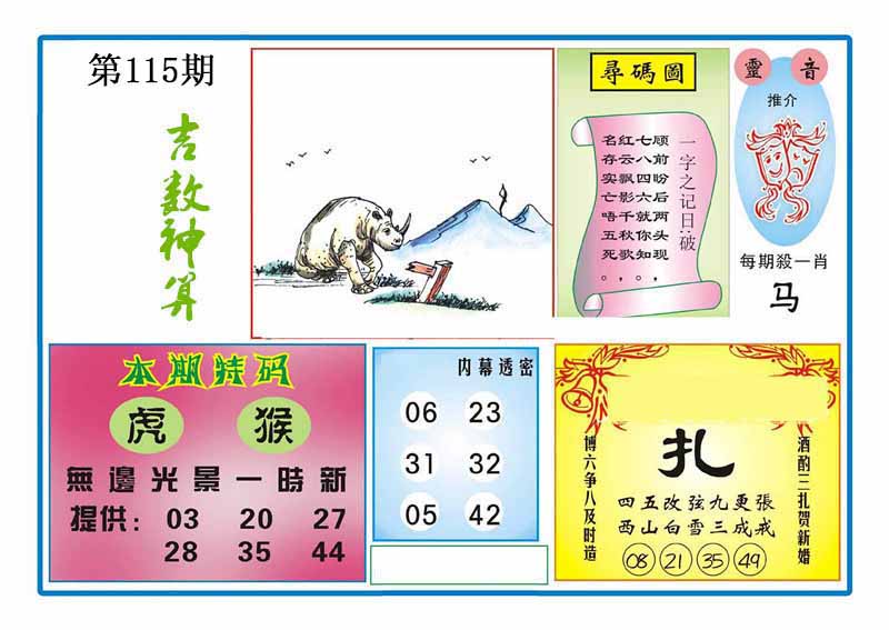 | 109期:神奇七尾【8 1 5 7 0 3 6】开:马01 |