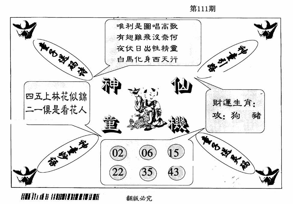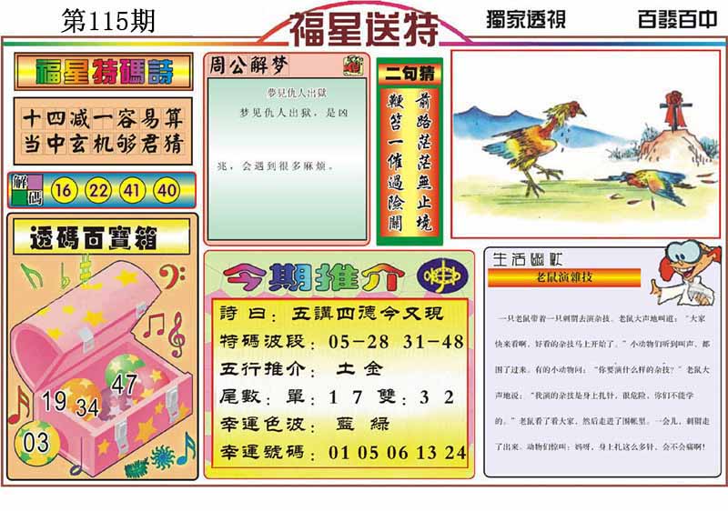 | 108期:精准五不中【43 46 19 22 11】鼠07 |