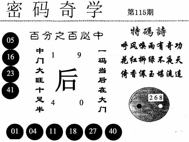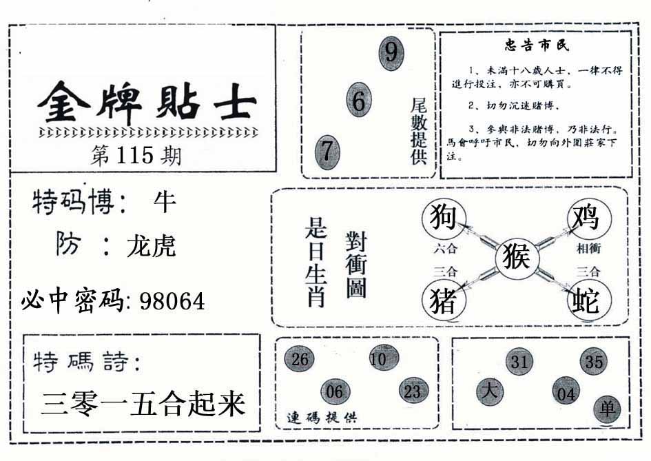 | 112期:神奇七尾【2 9 8 4 0 6 7】开:虎29 |