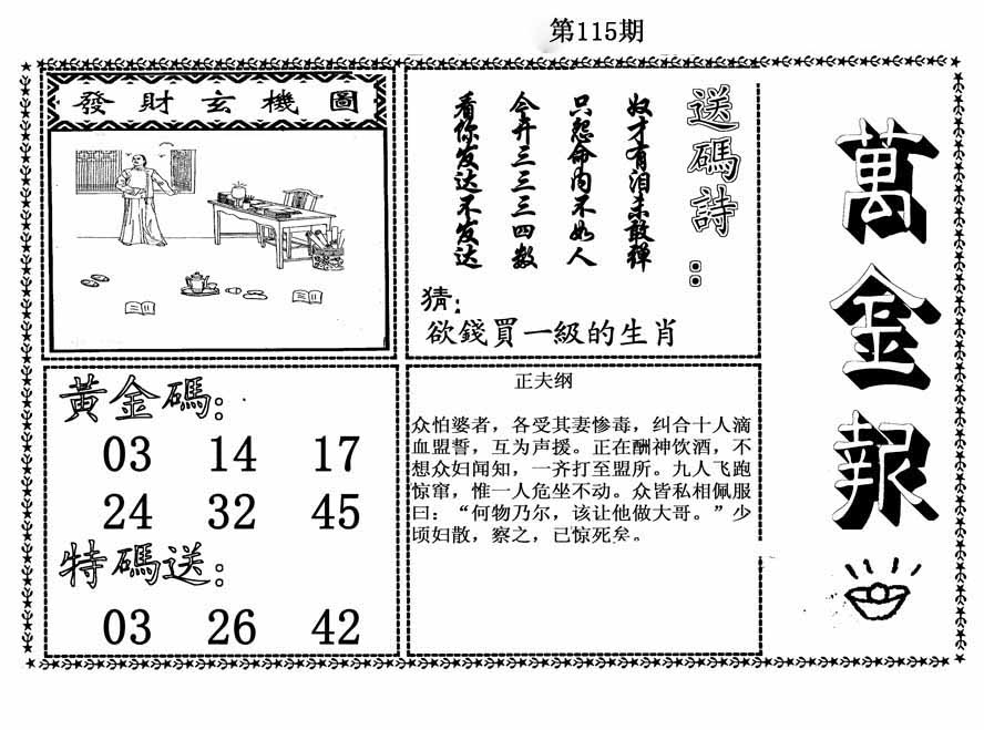 | 114期推荐五码:<43 05 42 39 45>大胆下注十万让你赚百万!