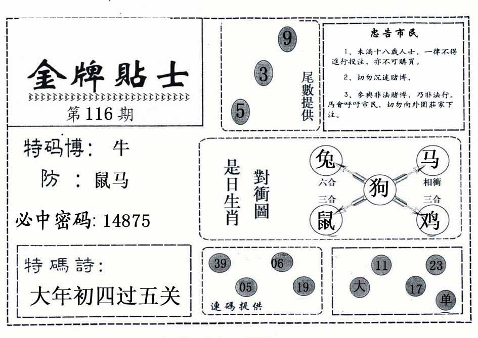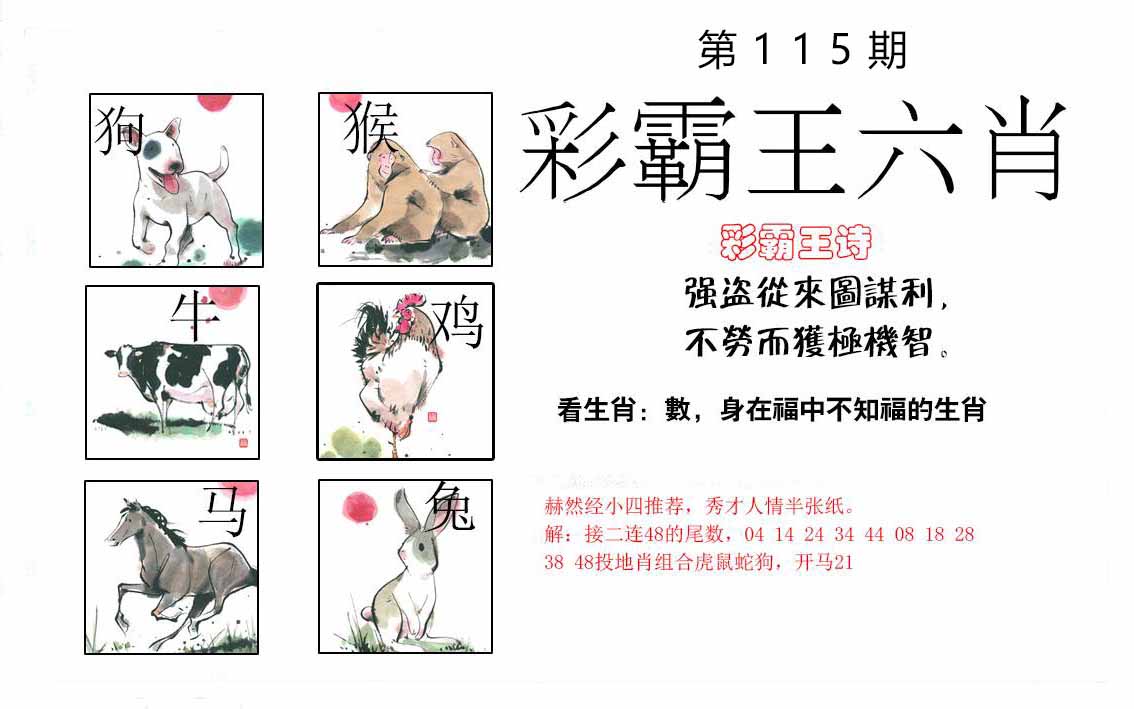 114期:【另版跑狗】开0 跑狗九肖:兔鼠鸡龙猪虎羊马蛇 跑狗七肖:兔鼠鸡龙猪虎羊 跑狗五肖:兔鼠鸡龙猪 跑狗三肖:兔鼠鸡 12码:46 30 48 05 18 13 32 29 23 36 19 24 | ||