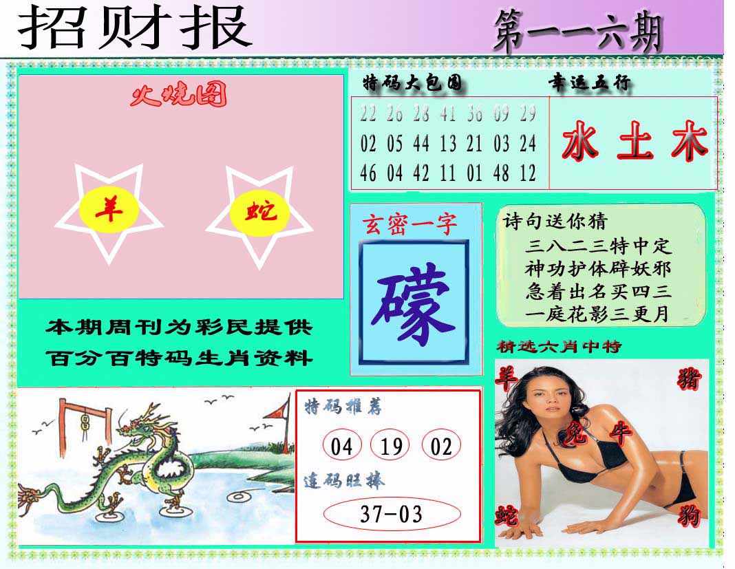 114期推荐六肖:<鸡马蛇虎猪龙>内幕资料请大胆下注! | ||