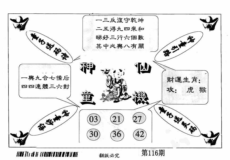 111期:【另版跑狗】开鸡46 跑狗九肖:狗龙鸡虎马羊兔猴蛇 跑狗七肖:狗龙鸡虎马羊兔 跑狗五肖:狗龙鸡虎马 跑狗三肖:狗龙鸡 12码:39 27 04 07 17 34 05 16 42 14 43 21 | ||