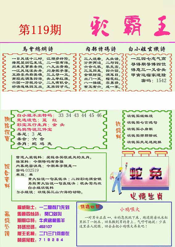 | 118期:《主攻:内幕规律平特肖:<兔>下50万》! | ||