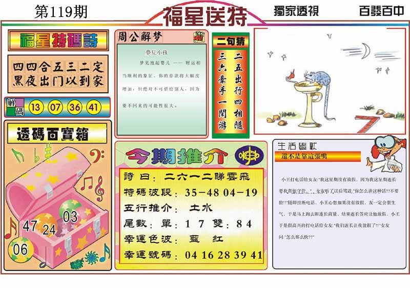 | 100期:神奇七尾【6 1 4 3 9 5 7】开:鼠31 |