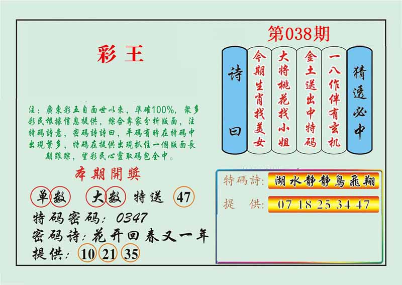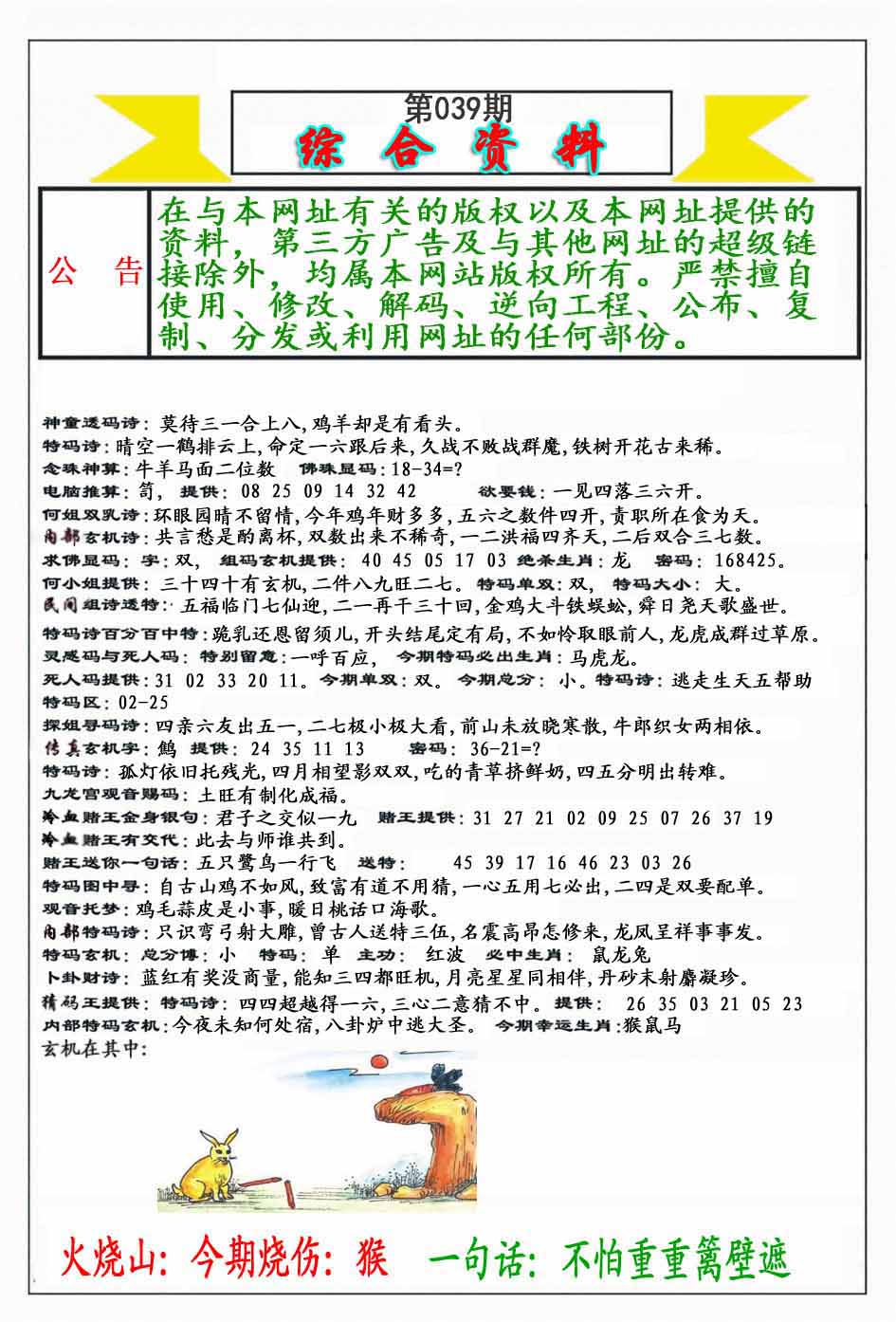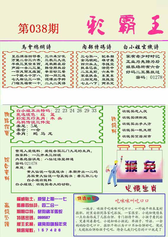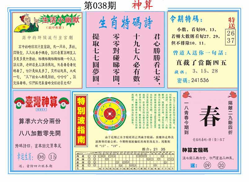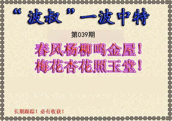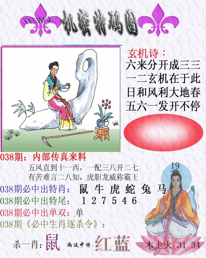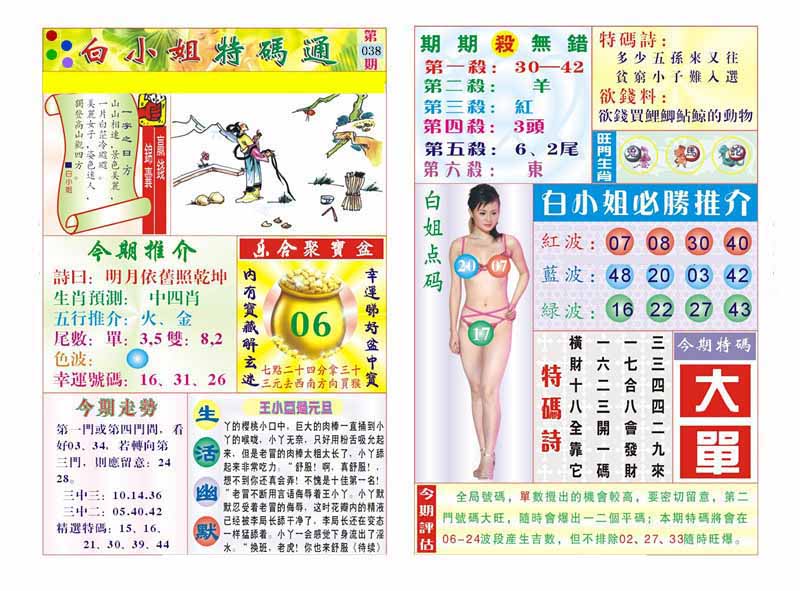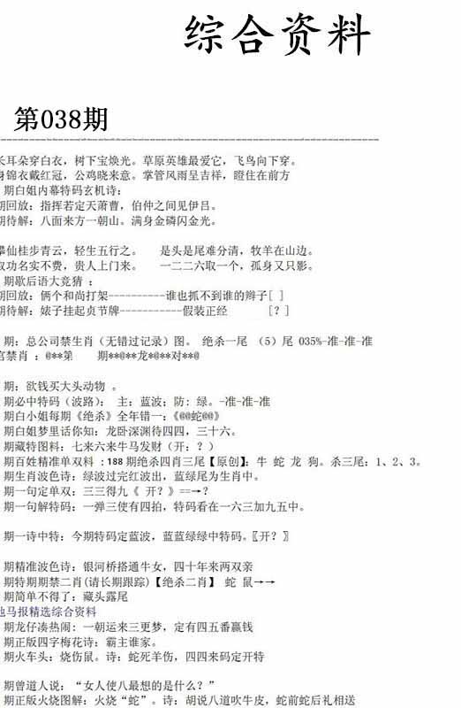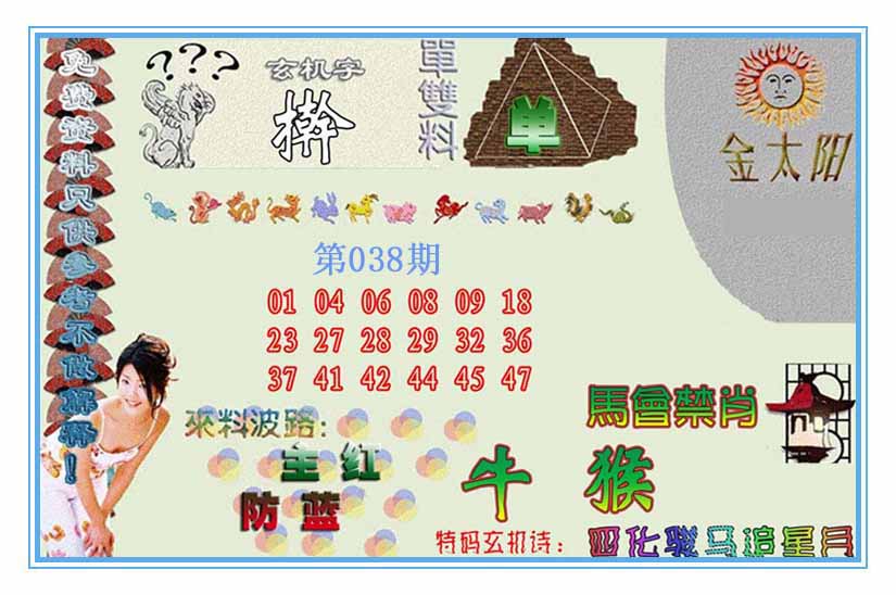 | 038期:《主攻:内幕规律平特肖:<羊>下50万》! | ||