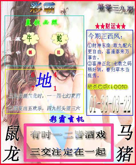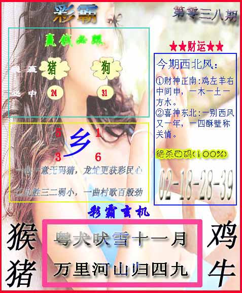 038期推荐六肖:<兔羊虎龙猴狗>内幕资料请大胆下注! | ||